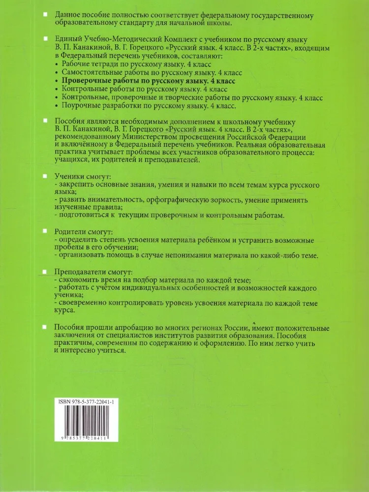 💳 Оплатить за товар можно при получении 🇰🇿 Есть бесплатная доставка по Казахстану от 1 дня 🎁 Копите бонусы с каждой покупки Настоящее пособие полностью соответствует федеральному государственному образовательному стандарту для начальной школы. Пособие направлено на проверку, отработку и закрепление знаний по всем темам курса «Русский язык. 4 класс». Занимаясь пособием, дети будут заполнять таблицы, выбирать ответы в тестовых заданиях, вводить пропущенные буквы и исправлять специально допущенные ошибки, классифицировать слова и словосочетания, составлять предложения и тексты. Такая работа поможет школьникам в течение всего учебного времени не забывать пройденный материал. |