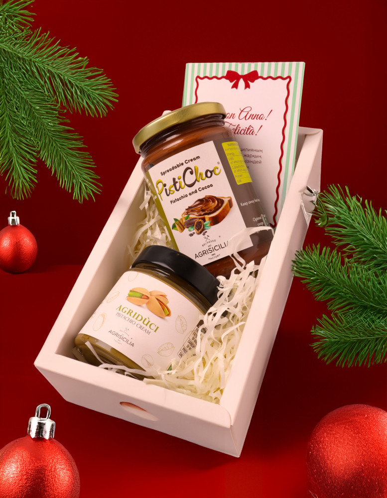 Agrisicilia Подарочный сладкий бокс «Кремовое наслаждение»В данный момент этот товар отсутствует в продаже. Возможно, у нас найдется аналогичный или похожий товар здесь. Откройте для себя уникальные сладости с набором «Пистичок»: крем из фисташек и какао (360 г) и крем из фисташек (200 г). Эти изысканные лакомства, созданные из натуральных ингредиентов, подарят вам истинное гастрономическое наслаждение. Крем из фисташек и какао сочетает в себе ореховую насыщенность и шоколадную сладость, а чистый фисташковый крем обманчиво прост, но поражает своим богатым вкусом. |