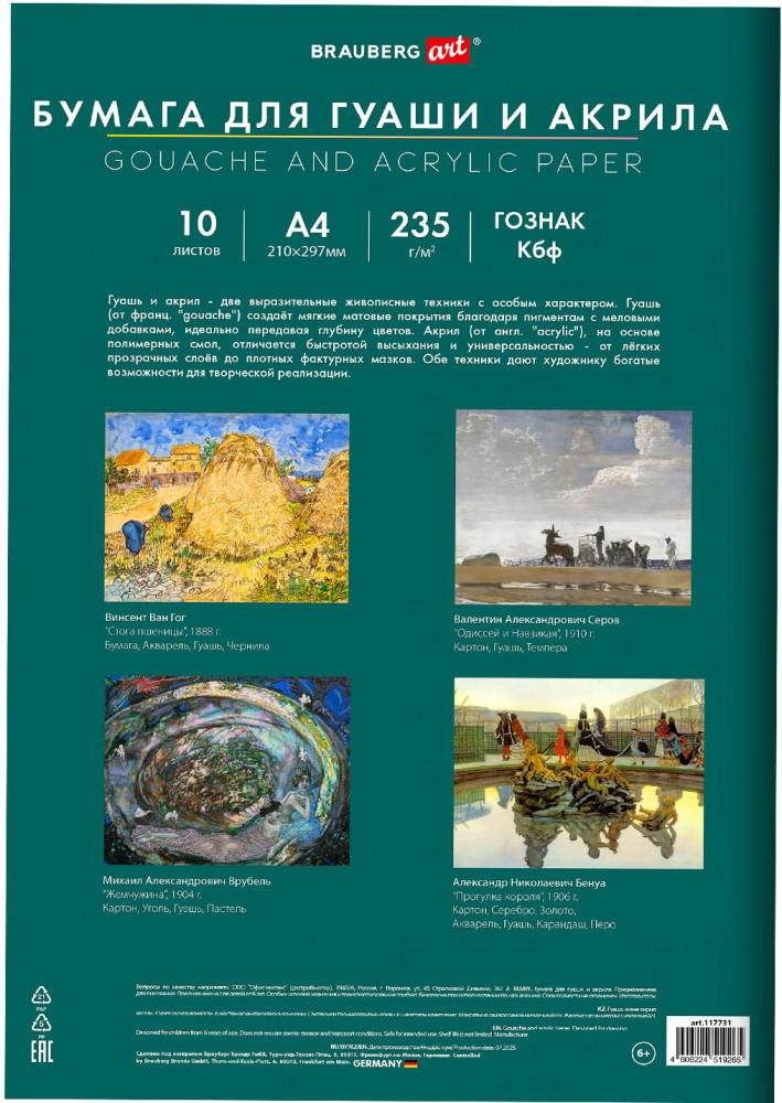 Brauberg Набор бумаги для гуаши и акрила «Кот-музыкант»новинка -20%