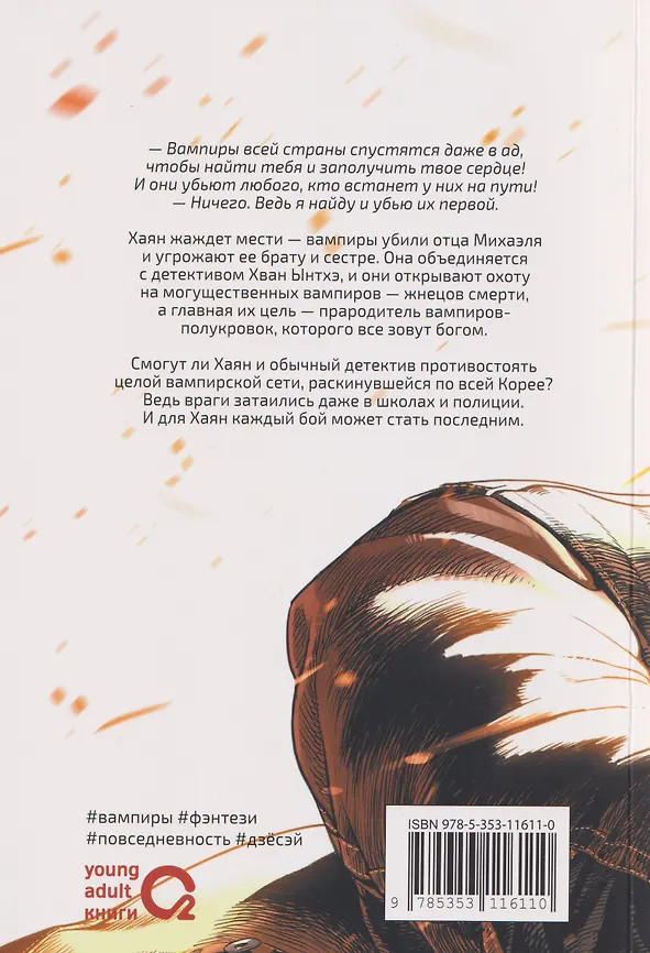 💳 Оплатить за товар можно при получении 🇰🇿 Есть бесплатная доставка по Казахстану от 1 дня 🎁 Копите бонусы с каждой покупки Серия: Белая кровь Хаян жаждет мести – вампиры убили отца Михаэля и угрожают ее брату и сестре. Она объединяется с детективом Хван Ынтхэ, чтобы открыть охоту на могущественных вампиров – жнецов смерти. Главная их цель – прародитель вампиров-полукровок, которого все зовут богом. Смогут ли Хаян и обычный детектив противостоять целой вампирской сети, раскинувшейся по всей Корее? Ведь враги затаились даже в школах и полиции. И для Хаян каждый бой может стать последним. |