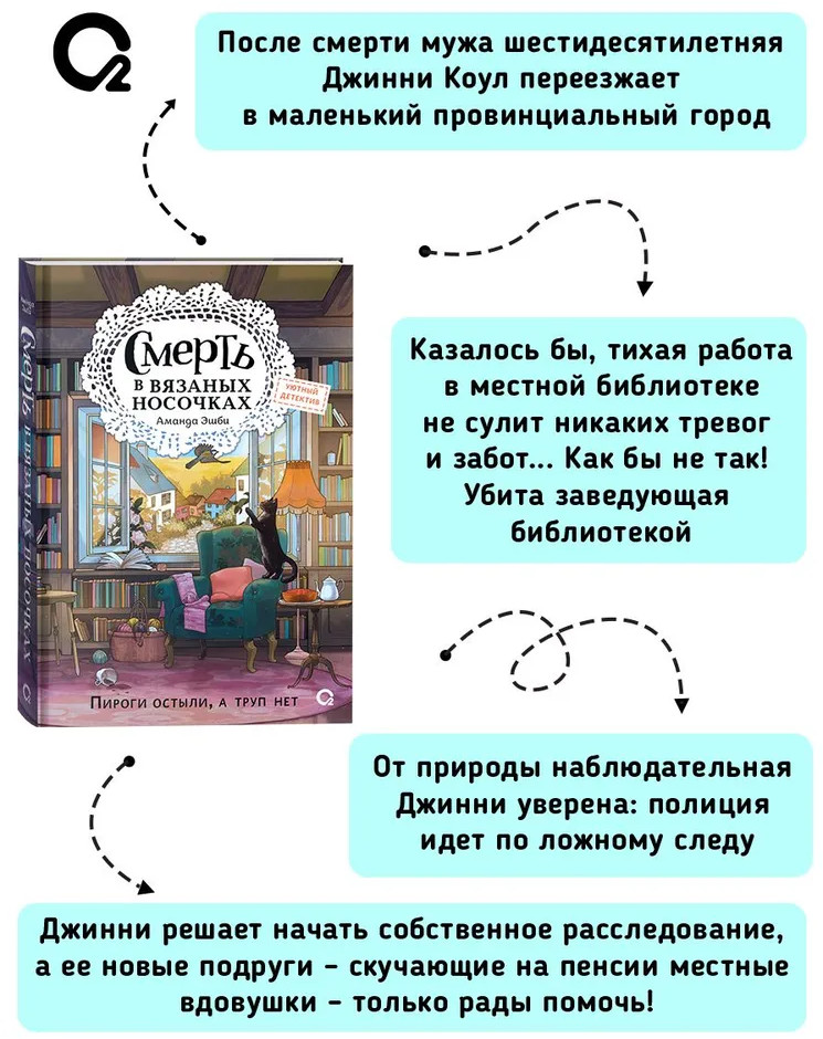 Серия: Клубок смертей. Уютный детектив Чтобы начать жизнь с чистого листа после смерти мужа, шестидесятилетняя Джинни Коул переезжает в Литтл-Шоу – маленький городок среди вересковых долин Ланкашира. Казалось бы, тихая работа в местной библиотеке не сулит никаких тревог и забот... Как бы не так! Убита заведующая библиотекой, и от природы наблюдательная Джинни уверена: полиция идет по ложному следу. Джинни решает начать собственное расследование, а ее новые подруги – скучающие на пенсии местные вдовы-затейницы – только рады помочь! Кажется, даже черный кот, обосновавшийся в библиотеке, что-то знает и время от времени подает знаки. Тайны опутали городок. Смогут ли вдовушки размотать этот клубок секретов? |
