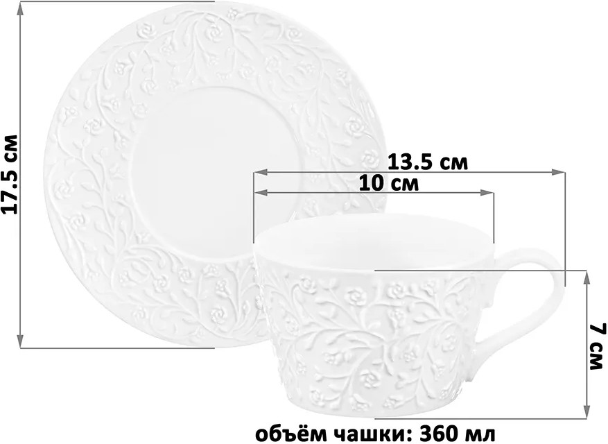 • чашка 360 мл, 13.5×10×7 см — 6 шт.;