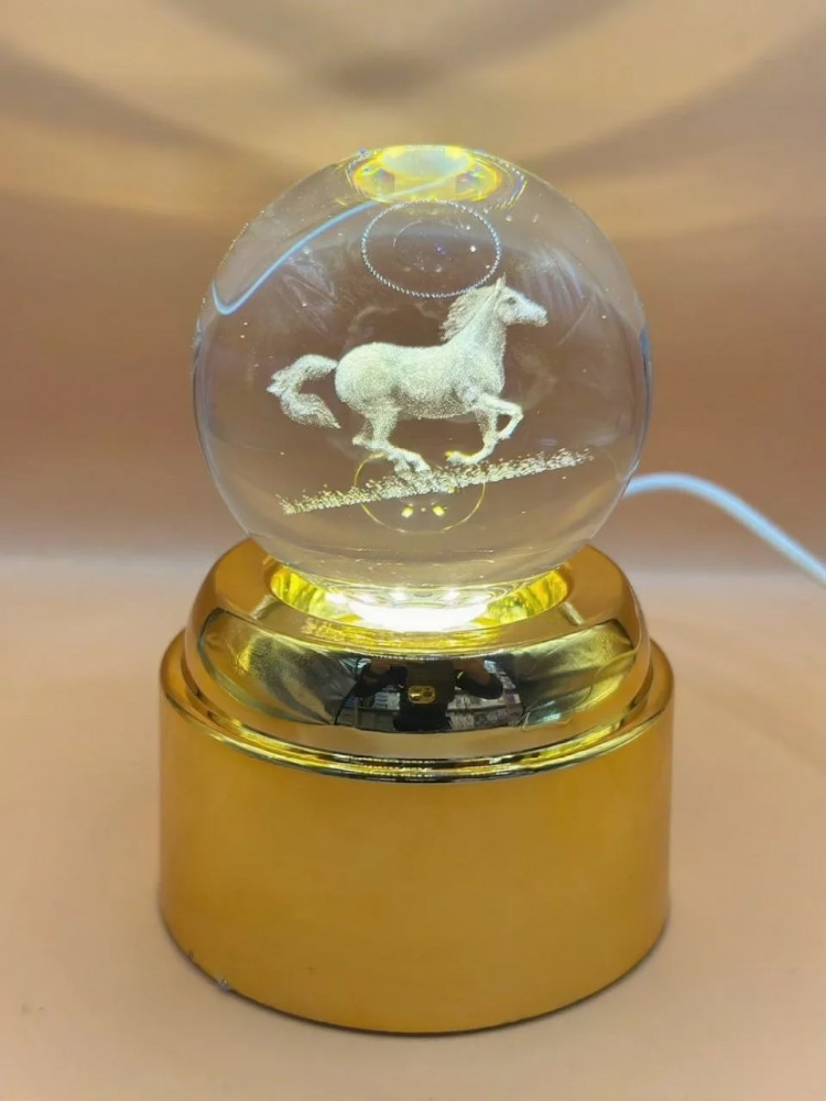 💳 Оплатить за товар можно при получении 🇰🇿 Есть бесплатная доставка по Казахстану от 1 дня 🎁 Копите бонусы с каждой покупки Кристальный светильник с гравировкой скачущей лошади. Тёплое белое свечение подчёркивает объём и детали изображения. Идеально подойдёт для подарка или украшения интерьера. |