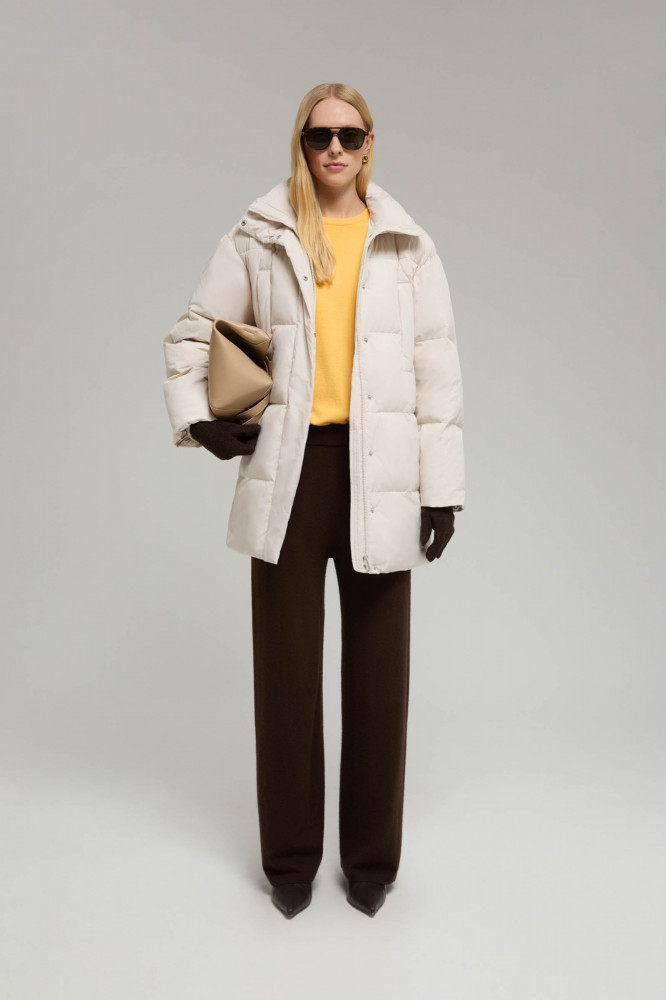 В качестве утеплителя использовали натуральный утиный пух, который отлично согревает, легок и создает внутри изделия комфортный микроклимат. Благодаря полимерному покрытию пухпакета утеплитель не мигрирует через ткань. Легкий и прочный подклад обработан антибактериальной и полиуретановой пропитками, которые предотвращают развитие микрофлоры и продлевают срок службы изделия.