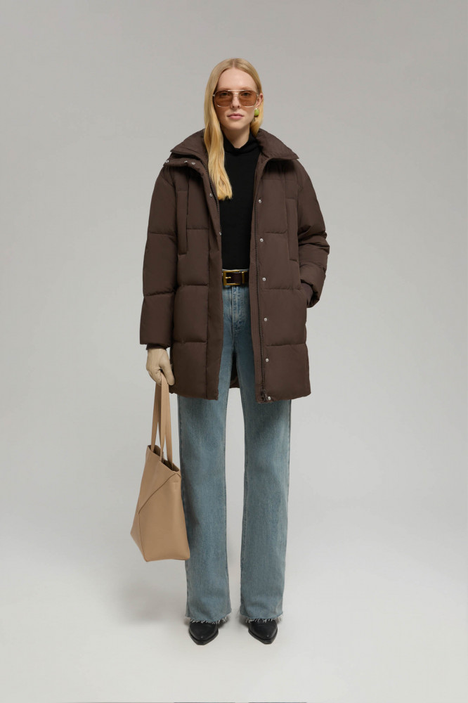 Стеганый удлиненный пуховик с натуральным пухом — в таком будет тепло даже в сильный мороз. Выполнен из технологичной ткани, которая благодаря специальным пропиткам защищает от мокрого снега, дождя и ветра, при этом пропускает воздух и позволяет телу дышать. Ткань устойчива к загрязнениям и отличается износостойкостью.