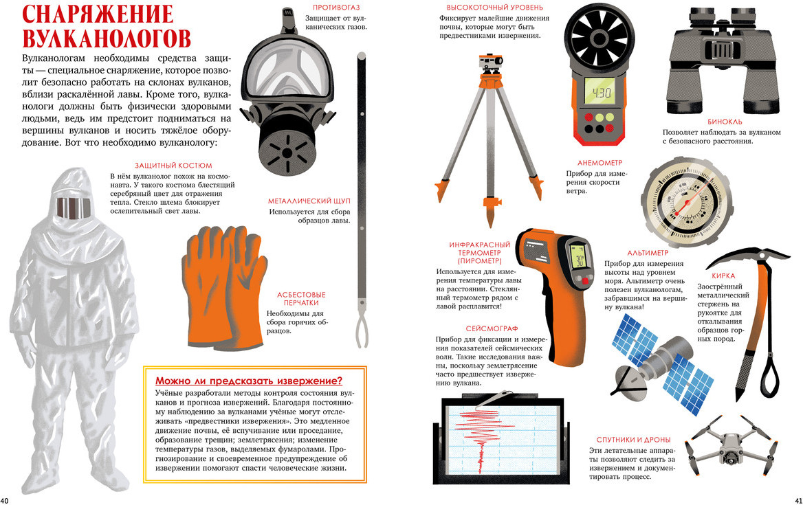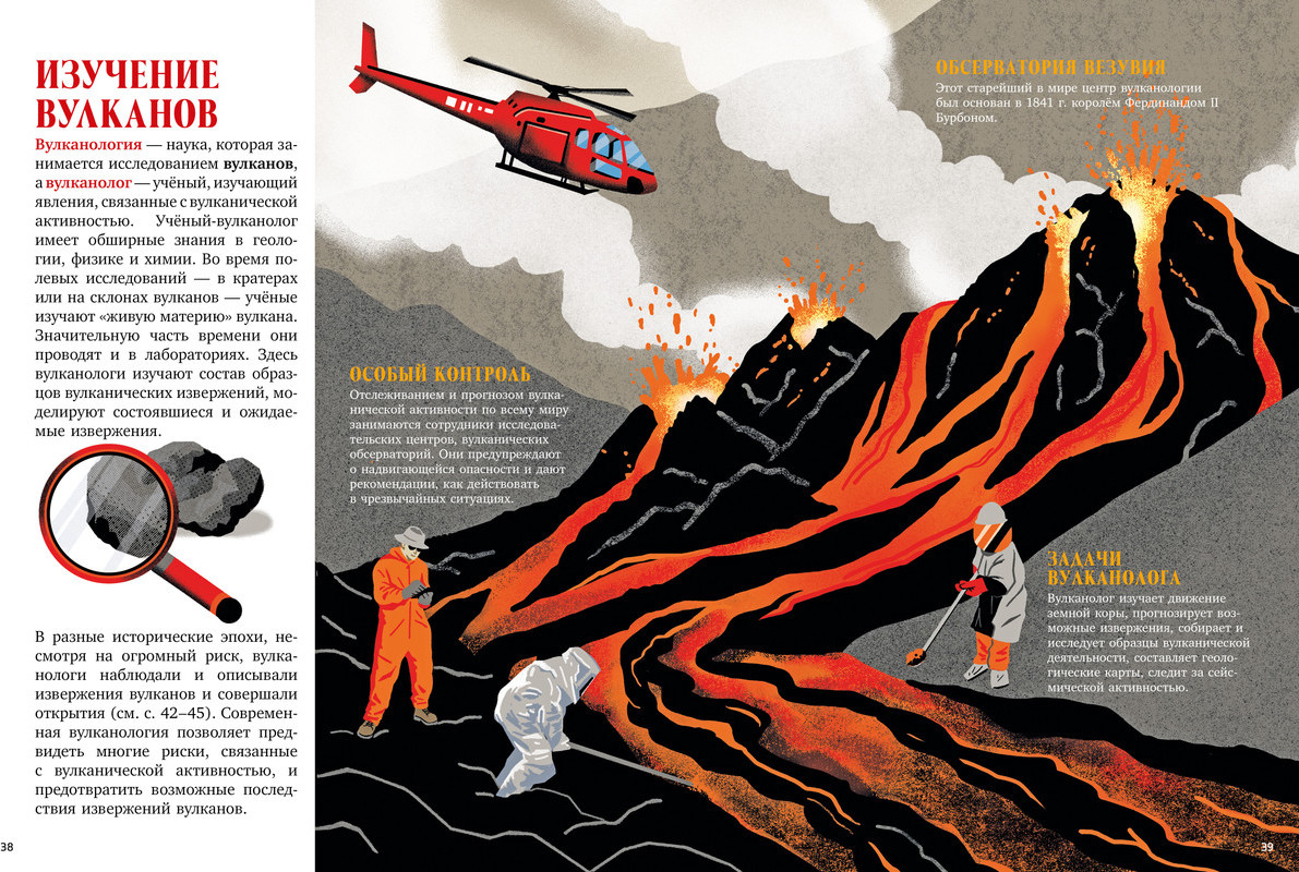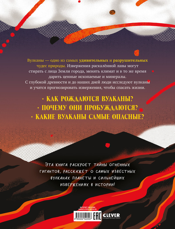 На страницах красочной интерактивной книги Clever вы прочитаете о том, что вулканы — одно из самых удивительных и разрушительных чудес природы. Извержения раскаленной лавы могут стирать с лица земли города и в то же время дарить ценные ископаемые и минералы. Люди исследуют вулканы и учатся прогнозировать извержения, чтобы спасать жизни.