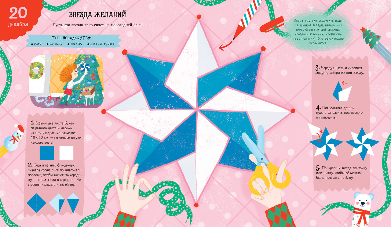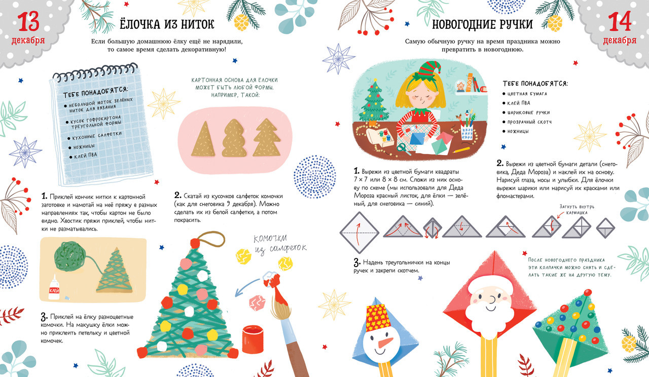 Серия: Новый Год Адвент-календарь превратит детскую комнату в настоящую новогоднюю мастерскую! Вашему ребенку предстоит сделать волшебные гусли, счастливую звезду, гирлянду из мандаринов, фигурки снеговиков и настоящие елочные игрушки. На каждый день декабря в книге есть одно предновогоднее дело. |
