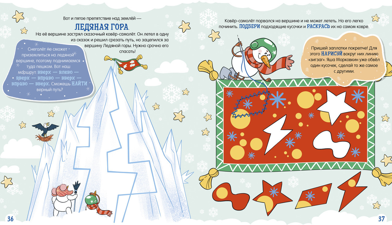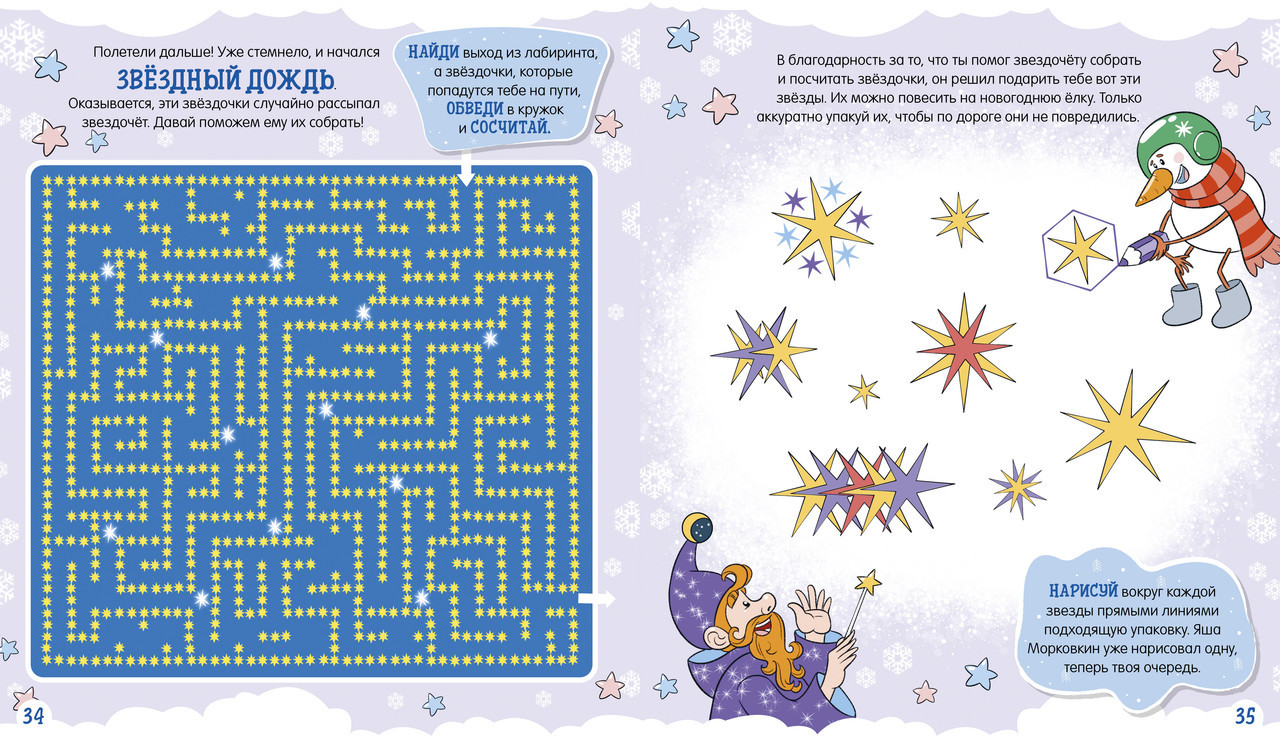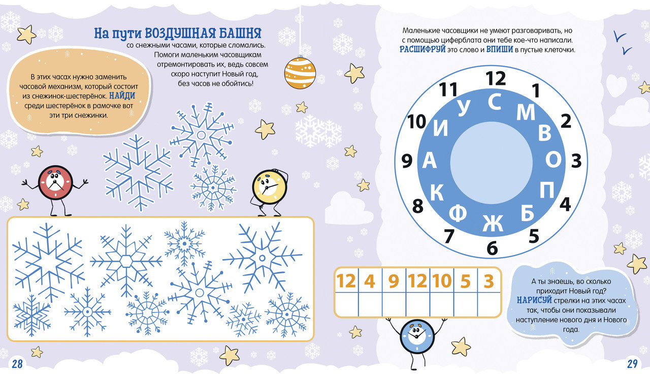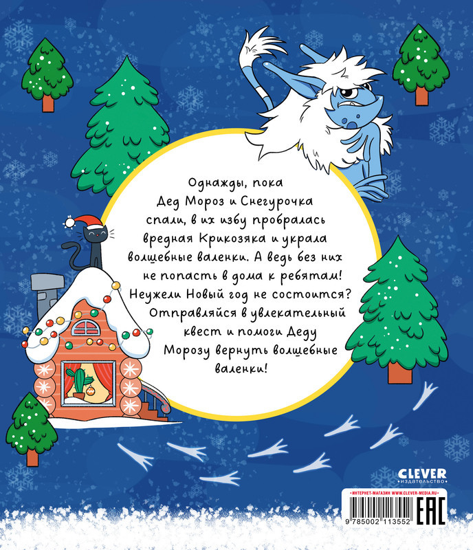Серия: Новый Год В этой книге с заданиями целых 65 праздничных игр для маленьких любителей загадок: запутанные лабиринты, раскраски, головоломки и настоящий детективный сюжет. Выполняя задания, ребенок шаг за шагом будет приближаться к его развязке. Однажды, пока Дед Мороз и Снегурочка спали, в их избу пробралась вредная Крикозяка и украла волшебные валенки. А ведь без них не попасть в дома к ребятам! Чтобы вернуть пропажу и помочь Деду Морозу, ребенок пройдет увлекательный квест: будет разгадывать шифры и головоломки, раскрашивать и дорисовывать, прокладывать путь в лабиринтах и искать спрятанные предметы. Для игры в «Новогодний квест. Кто похитил валенки Деда Мороза?» понадобятся только цветные карандаши или фломастеры. Берите книгу с собой, чтобы занять ребенка, где бы вы ни были: в гостях, в дороге или в путешествии. А на последних страницах ждет подарок — схема и бумажная заготовка для волшебной снежинки. |