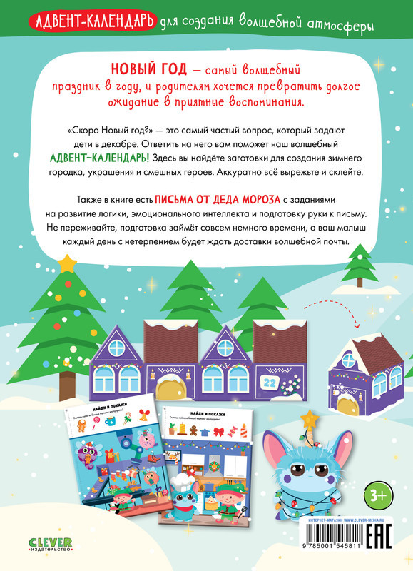 Здесь вы найдете заготовки для создания зимнего городка, новогодние украшения и смешных героев. Аккуратно всё вырежьте и склейте. Также в книге есть задания на развитие логики, внимания, воображения, эмоционального интеллекта и подготовку руки к письму. Не переживайте, подготовка займёт совсем немного времени, а ваш малыш каждый день с нетерпением будет ждать волшебного письма от Деда Мороза. Задания в книге: лабиринты, найди и покажи, новогодний пазл, задания на логику и внимательность, раскраски по номерам, новогодняя разминка-зарядка, обведи и раскрась, поделки своими руками.