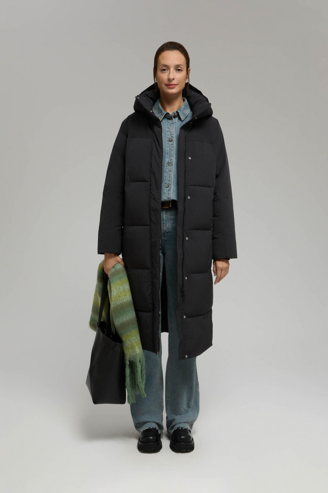 Легкий и прочный подклад обработан антибактериальной и полиуретановой пропитками, которые предотвращают развитие микрофлоры и продлевают срок службы изделия. Пальто свободного кроя с удобными цельнокроенными рукавами комфортно садится по фигуре, не сковывая движения. Съемный капюшон, воротник-стойка и внутренние манжеты на рукавах служат дополнительной защитой от ветра.