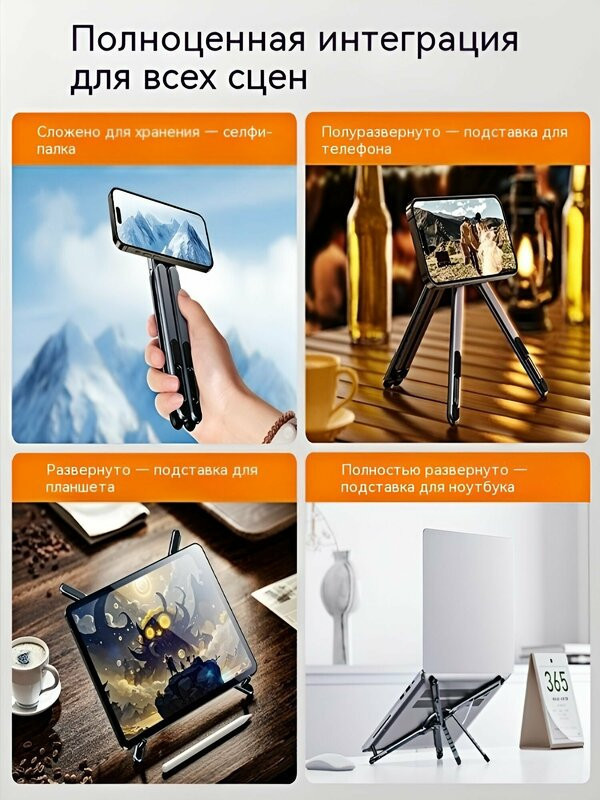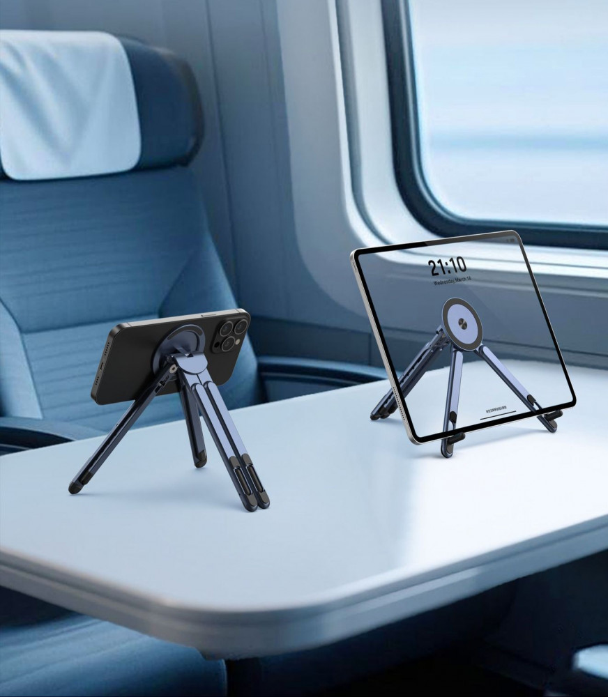 В данный момент этот товар отсутствует в продаже. Возможно, у нас найдется аналогичный или похожий товар здесь. Универсальный магнитный держатель-подставка 3-в-1 — это складное трансформирующееся устройство, подходящее для смартфона, планшета и ноутбука. Оснащён мощным магнитным модулем, который надёжно фиксирует телефон одним касанием. Подставка легко регулируется по высоте и углу наклона, вращается на 180° и складывается до компактного размера — удобно брать с собой в дорогу, использовать дома, в офисе, на учёбе или в поездке.