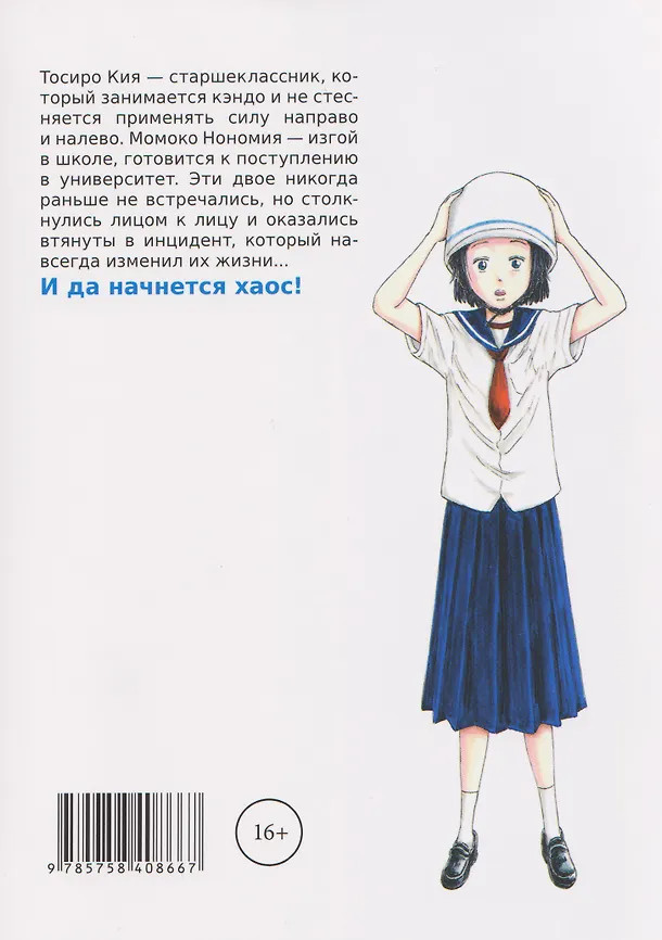 💳 Оплатить за товар можно при получении 🇰🇿 Есть бесплатная доставка по Казахстану от 1 дня 🎁 Копите бонусы с каждой покупки Тосиро Кия — старшеклассник, который занимается кэндо и не стесняется применять силу направо и налево. Момоко Нономия — изгой в школе, готовится к поступлению в университет. Эти двое никогда раньше не встречались, но столкнулись лицом к лицу и оказались втянуты в инцидент, который навсегда изменил их жизни... И да начнется хаос! |
