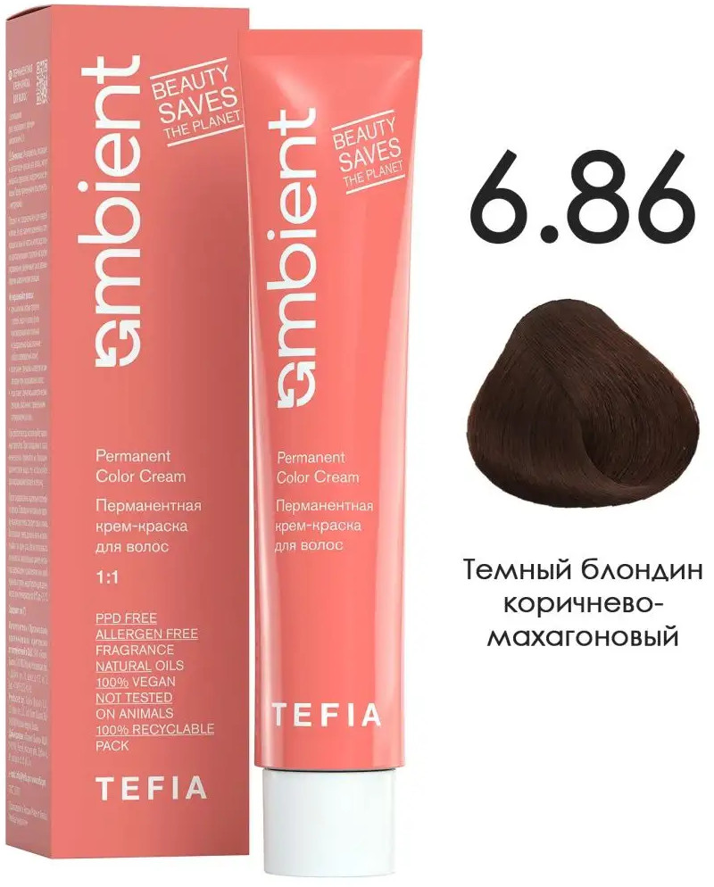 Tefia Крем-краска для волос перманентная, оттенок 6.86 Темный блондин коричнево-махагоновый