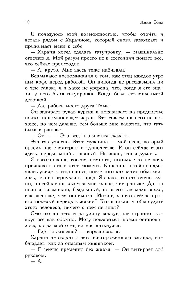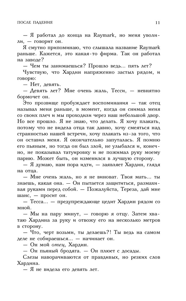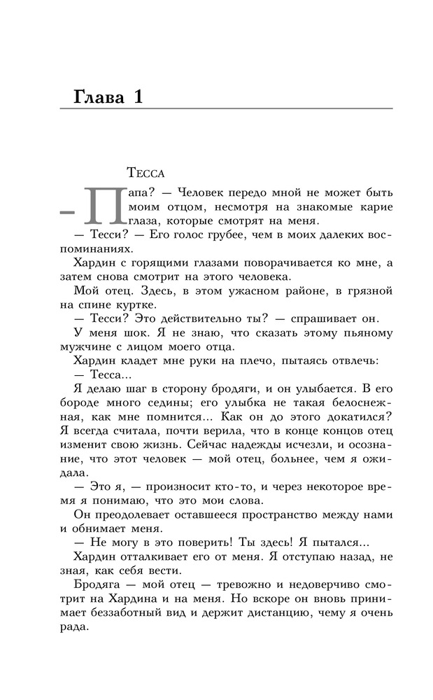 Да, третья часть не оправдала всех надежд. В конце - интрига. Теперь жду следующую часть. Немного однообразен сюжет и затянут, утомляет постоянное описание сцен ссор между Тесс и Хардином и их примирение. Описание интимных сцен - не для "слабонервных", но пошлости нет. А в общем, - это легкое чтиво, которое приятно почитать, чтобы отвлечься и ни о чём не задумываться.
