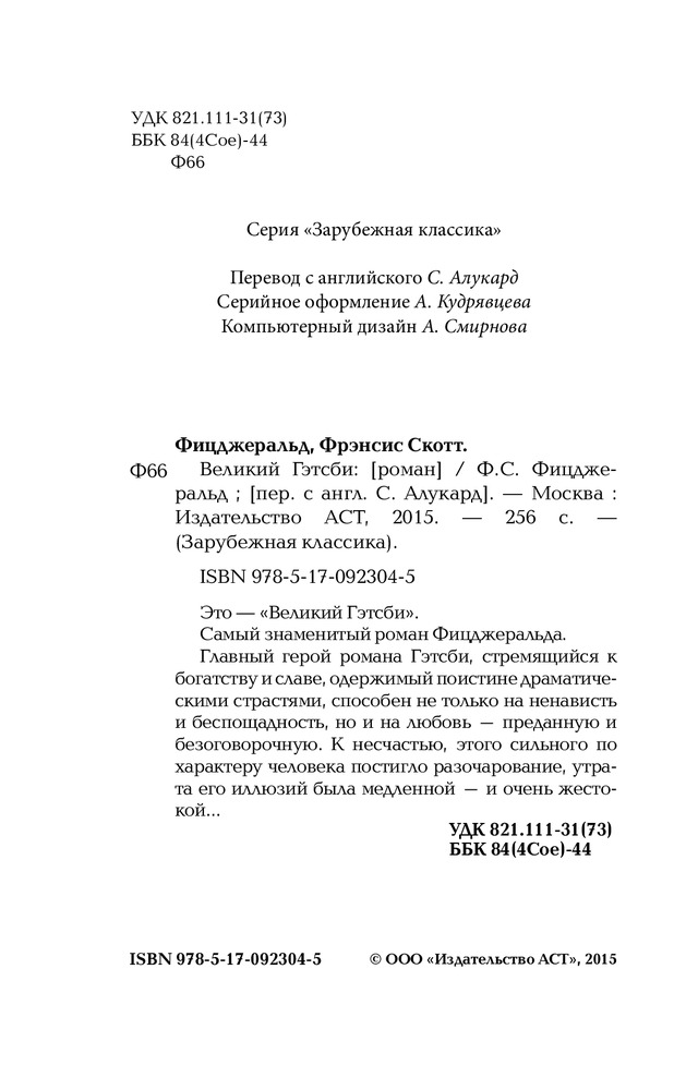 Великий ГэтсбиВ данный момент этот товар отсутствует в продаже. Возможно, у нас найдется аналогичный или похожий товар здесь. Серия: Зарубежная классика Это — «Великий Гэтсби». |