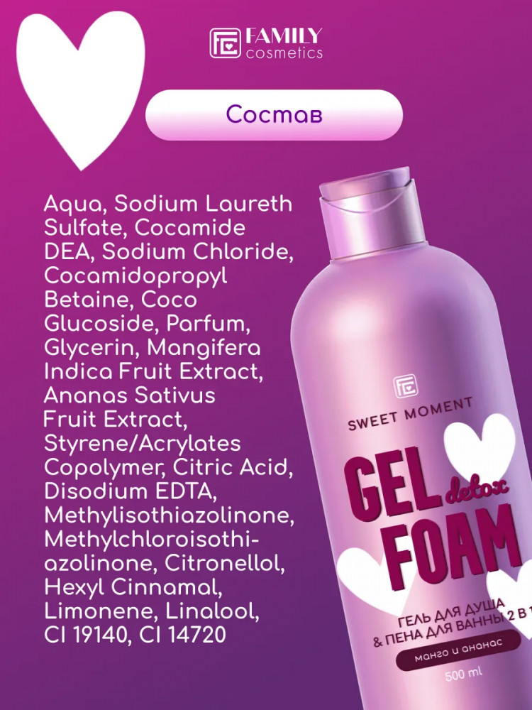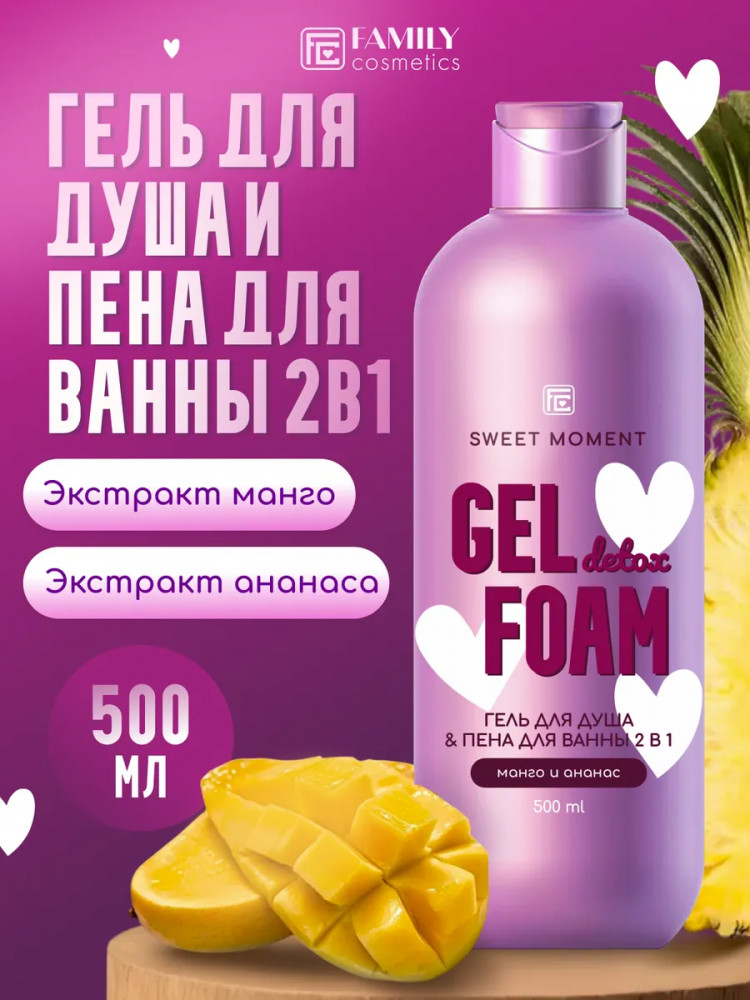 Family cosmetics Гель для душа и пена для ванны 2 в 1 «Манго и ананас»