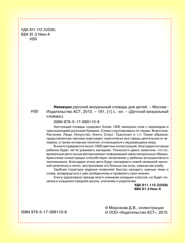 Немецко-русский визуальный словарь для детейВ данный момент этот товар отсутствует в продаже. Возможно, у нас найдется аналогичный или похожий товар здесь. Серия: Детский визуальный словарь Благодаря методу ассоциативного запоминания новые слова усваиваются легче и быстрее! |