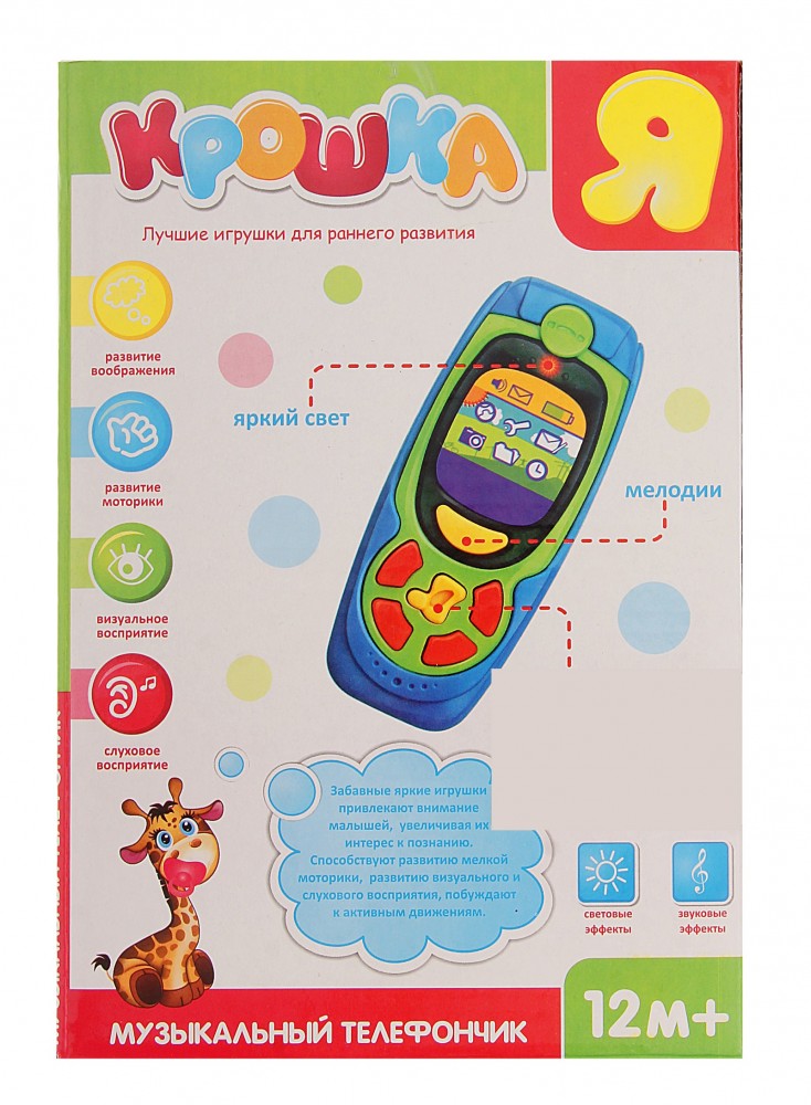 Крошка Я Телефончик музыкальныйВ данный момент этот товар отсутствует в продаже. Возможно, у нас найдется аналогичный или похожий товар здесь. Дети рано начинают копировать взрослых и подражают им во всём, а особенно они любят разговаривать по сотовому. Поэтому Телефончик музыкальный, световой, работает от батареек непременно понравится вашему ребенку. Он оснащен кнопочками, при нажатии на которые проигрываются различные мелодии. Игрушка способствует развитию у ребенка музыкального слуха, восприятию звуков и мелкой моторики рук. |