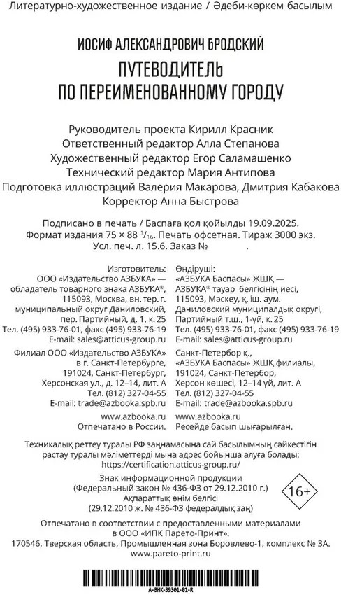 💳 Оплатить за товар можно при получении 🇰🇿 Есть бесплатная доставка по Казахстану от 1 дня 🎁 Копите бонусы с каждой покупки Серия: Больше чем книга Этот сборник составили произведения Иосифа Бродского, объединенные темой Ленинграда — города, в котором он родился и вырос и где прошла значительная часть его жизни до эмиграции из СССР. Наряду с такими известными стихотворениями, как «От окраины к центру», «Остановка в пустыне», «С февраля по апрель», в книгу вошли и редко публикуемые — «Стансы городу», «Блестит залив и ветр несет...», «Набережная р. Пряжки» и др., а также два эссе — «Путеводитель по переименованному городу» и «Полторы комнаты». Издание прекрасно оформлено: в него включены архивные фотоснимки Ленинграда 1960-1970-х годов. Их автор — выдающийся фотограф Илья Авраамович Наровлянский (1921-2000). Книга станет прекрасным подарком мужчинам и женщинам к любой дате: к Новому году, к 8 марта и 23 февраля, ко Дню всех влюбленных, она адресована не только знатокам и ценителям русской поэзии, но и самой широкой читательской аудитории. |