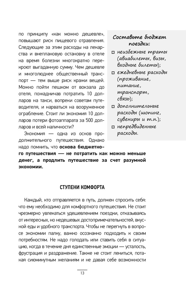 Как объехать весь мир на одну зарплату. Путешествуем дешево и хорошоВ данный момент этот товар отсутствует в продаже. Возможно, у нас найдется аналогичный или похожий товар здесь. Серия: Туризм в деталях (обложка) Книга о том, как правильно организовать поездку, купить лучшие билеты, найти оптимальное проживание по своему бюджету, составить маршрут и выбрать средство передвижения, подобрать попутчика, купить еду и организовать свой досуг. |