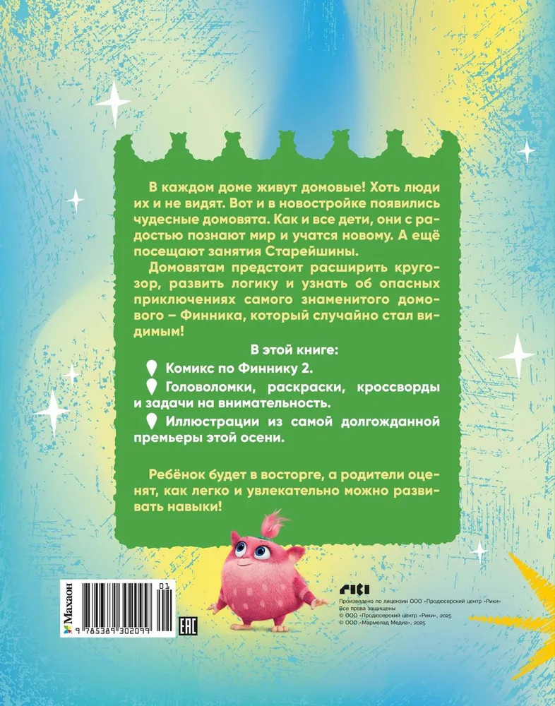 💳 Оплатить за товар можно при получении 🇰🇿 Есть бесплатная доставка по Казахстану от 1 дня 🎁 Копите бонусы с каждой покупки Серия: Финник 2. Книги по фильму В каждом доме живёт домовой! Хоть люди их и не видят. Вот и теперь в новостройке родились чудесные домовята. Как и все дети, они с радостью познают мир. Посещают занятия Старейшины и учатся новому. Домовятам предстоит расширить горизонты и прокачать логику. А ещё узнать об опасных приключениях самого знаменитого домового — Финника, который случайно стал видимым! |