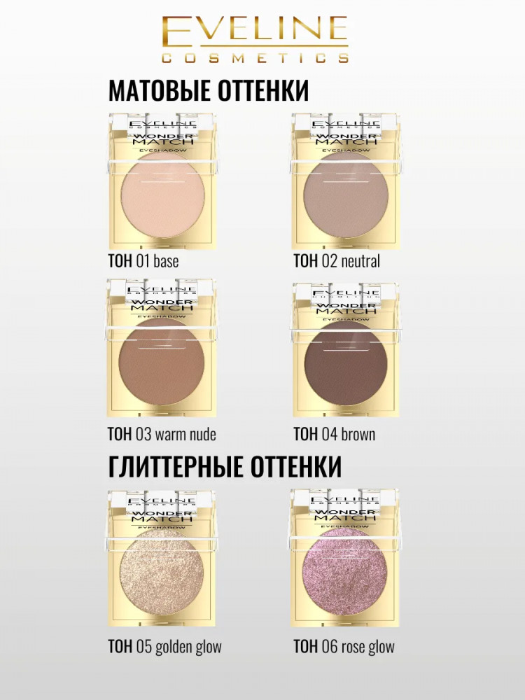 Eveline Cosmetics Тени для век матовые с высокой пигментацией, оттенок 01 Base