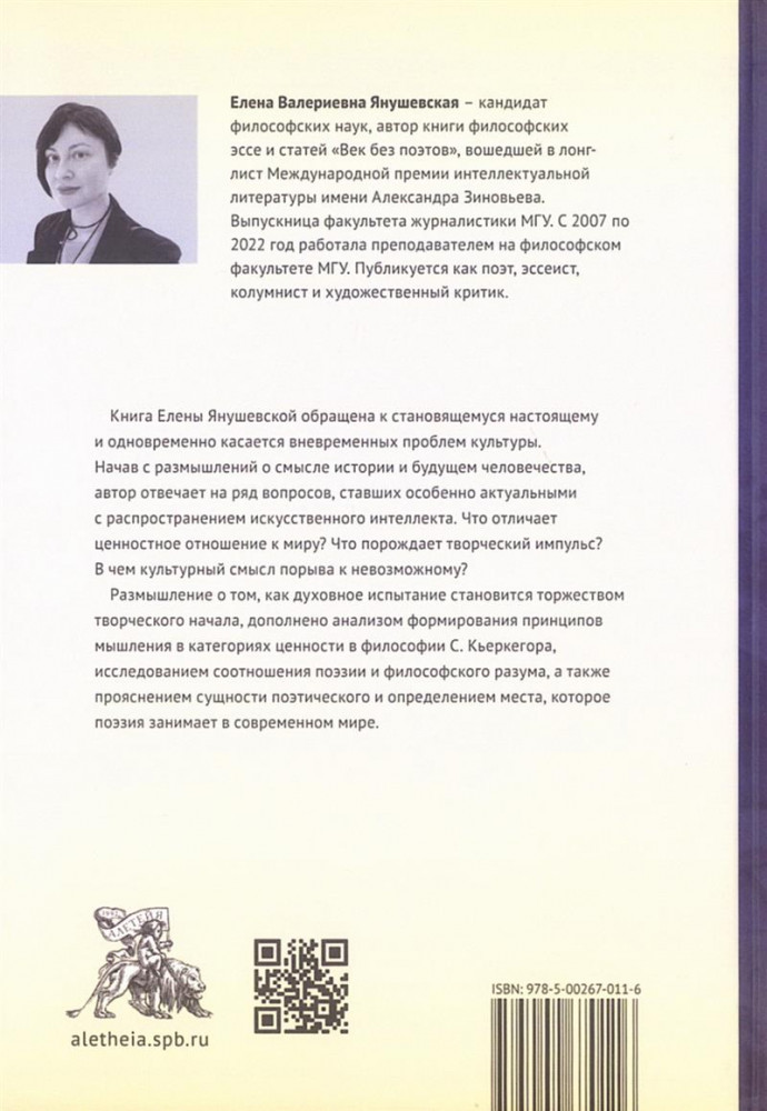 💳 Оплатить за товар можно при получении 🇰🇿 Есть бесплатная доставка по Казахстану 🎁 Копите бонусы с каждой покупки В книге затронут круг вопросов, ставших особенно важными с распространением искусственного интеллекта и «машинного творчества». Что отличает ценностное отношение к миру? Кто такой гений? Какова сущность творчества? Центральное эссе «О ценностном конфликте как источнике творчества» базируется на философской теории ценностей. Осмысливая проблему на пересечении аксиологии, философской антропологии, философии сознания и философии искусства, автор формулирует понимание: творчество начинается с преодоления трагического противоречия, проживаемого личностью как ценностный конфликт. В силу особенностей ценностного отношения к миру он неразрешим. Однако личность способна духовно переродиться, решиться на ранее «невозможное» в ее восприятии и открыть новую ценность. Это усилие автор рассматривает как универсальную основу творчества. Эссе «Изобретатель ценности абсурда» обращено к началу формирования мышления в категориях ценности в сочинениях Серена Кьеркегора. Помимо него, основное эссе дополняется философским исследованием сущности артистического, размышлением о месте поэзии в современном мире и ее соотношении с философским разумом. Книга адресована как ученым-гуманитариям, так и широкому читателю, интересующемуся современным знанием о человеке. |