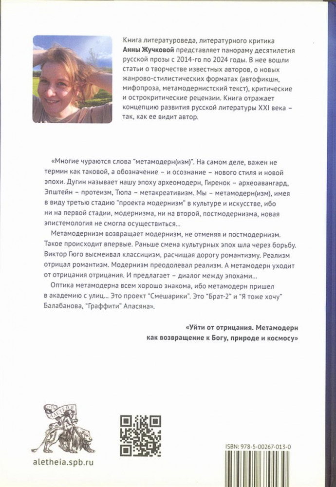 💳 Оплатить за товар можно при получении 🇰🇿 Есть бесплатная доставка по Казахстану от 1 дня 🎁 Копите бонусы с каждой покупки Книга литературоведа, литературного критика Анны Жучковой представляет панораму десятилетия русской прозы с 2017-го по 2024 годы. В нее вошли статьи о творчестве известных авторов, о новых жанрово-стилистических форматах (автофикшн, мифопроза, метамодернистский текст), критические и острокритические рецензии. Книга отражает авторскую концепцию развития русской литературы XXI века. |