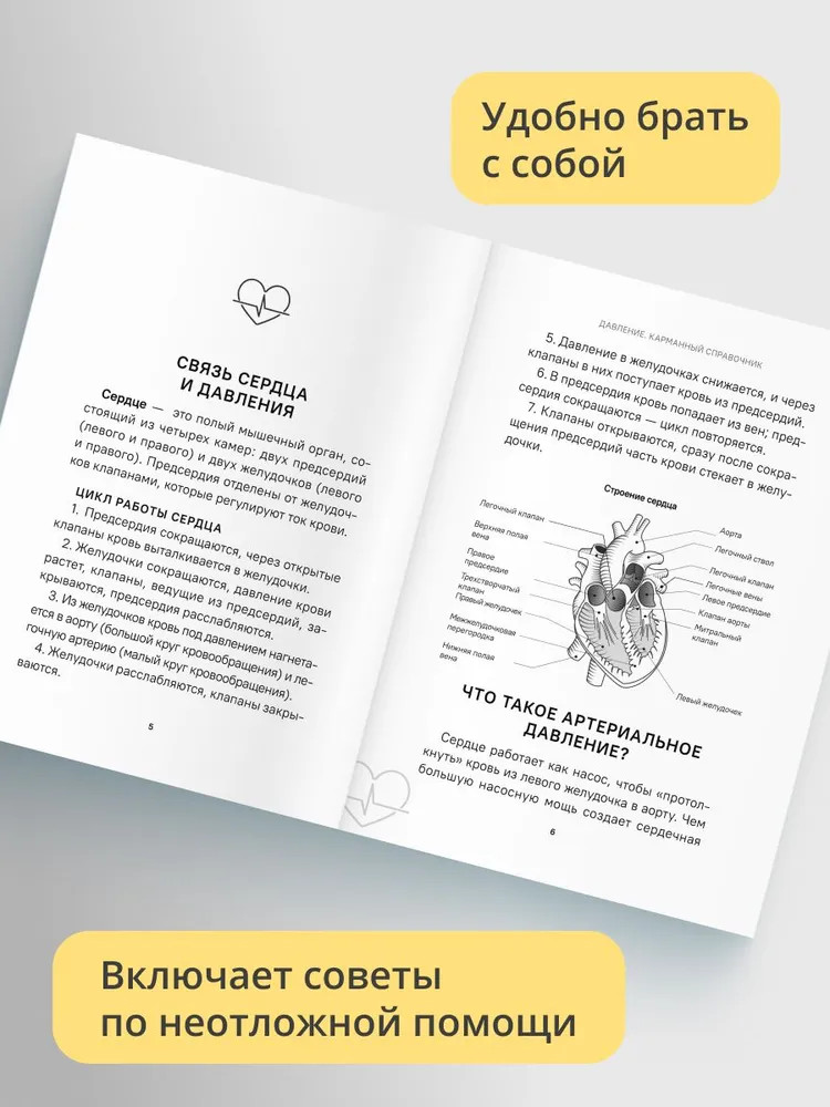 💳 Оплатить за товар можно при получении 🇰🇿 Есть бесплатная доставка по Казахстану 🎁 Копите бонусы с каждой покупки Серия: Первая помощь Карманный справочник содержит самую важную информацию о работе сердца, давлении и связанных с ним заболеваниях, в частности — о гипертонии и гипотонии. Вы узнаете о факторах, влияющих на давление, симптомах и причинах гипертонии и гипотонии. В справочнике рассказывается о возможных осложнениях, способах диагностики и профилактики, эффекте белого халата и методах суточного мониторинга. Вы научитесь правильно измерять давление и выбирать тонометры. А информация о том, как оказывать первую домедицинскую помощь при гипертоническом кризе или резком падении давления, способна даже спасти жизнь! Благодаря удобному формату справочник можно носить с собой. |