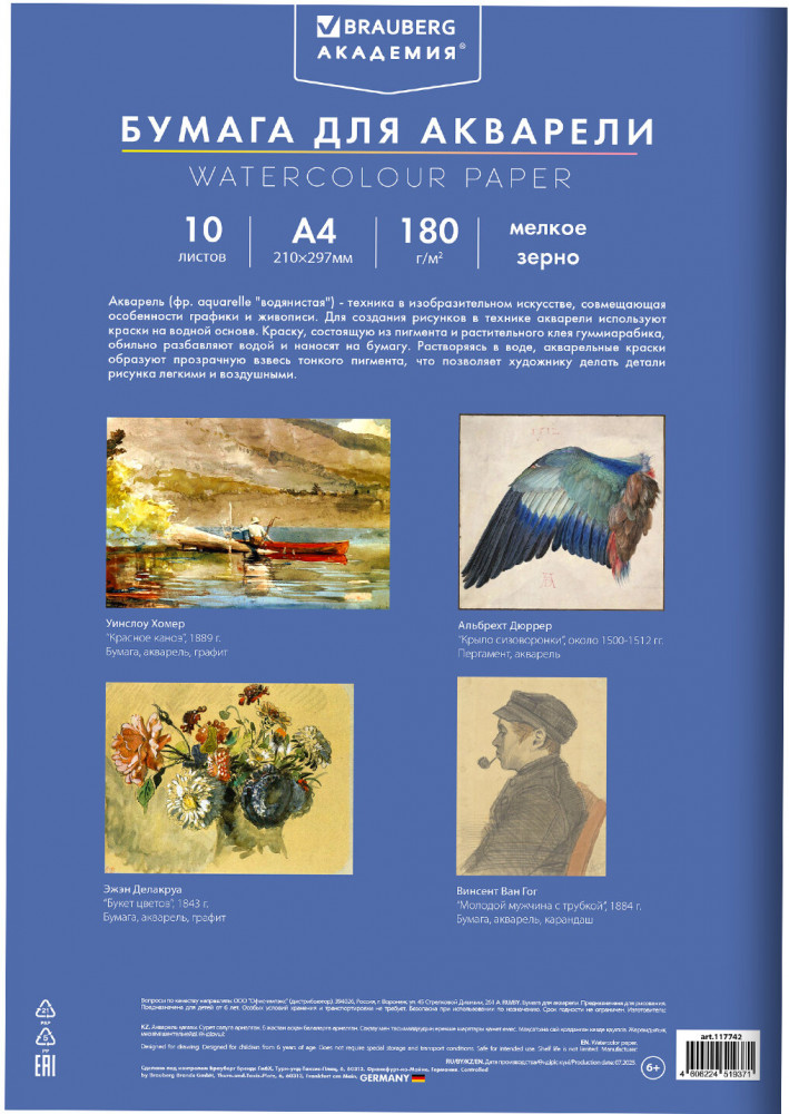 Серия: Академия Папка для акварели предназначена для рисования всеми видами водорастворимых красок, а также подойдет для рисования карандашами, ручками и фломастерами. Бумага подходит для непрофессионального и детского рисования. Папка для акварели содержит 10 листов формата А4 (210×297 мм). Белизна 100%. Качественные листы высокой плотности 180 г/м2 устойчивы к истиранию, воздействию влаги, обеспечивают чистую реалистичную передачу цвета. Обложка выполнена из мелованного картона. |