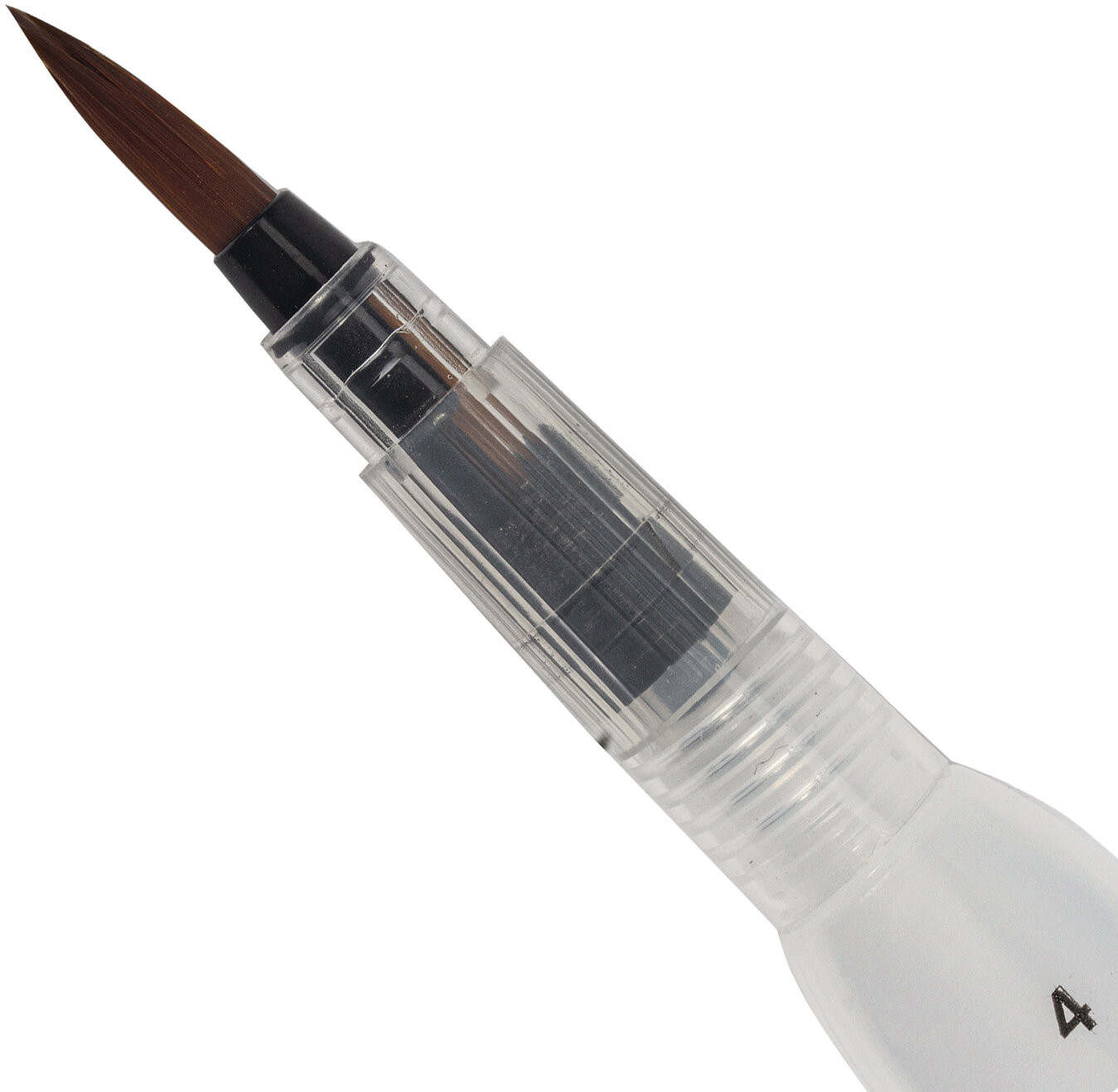 Серия: Art debut Кисть с резервуаром для воды или аквакисть отлично подходит для работы с акварелью, гуашью, акварельными карандашами и гелевыми ручками для создания эффектов размытия и цветовых переходов. Идеальный «дорожный» инструмент, подходит для пленэра. Кисть с резервуаром для воды или аквакисть изготовлена с применением высококачественной синтетики. Корпус кисти выполнен из пластмассы белого цвета. Короткая ручка, номер кисти — 4.