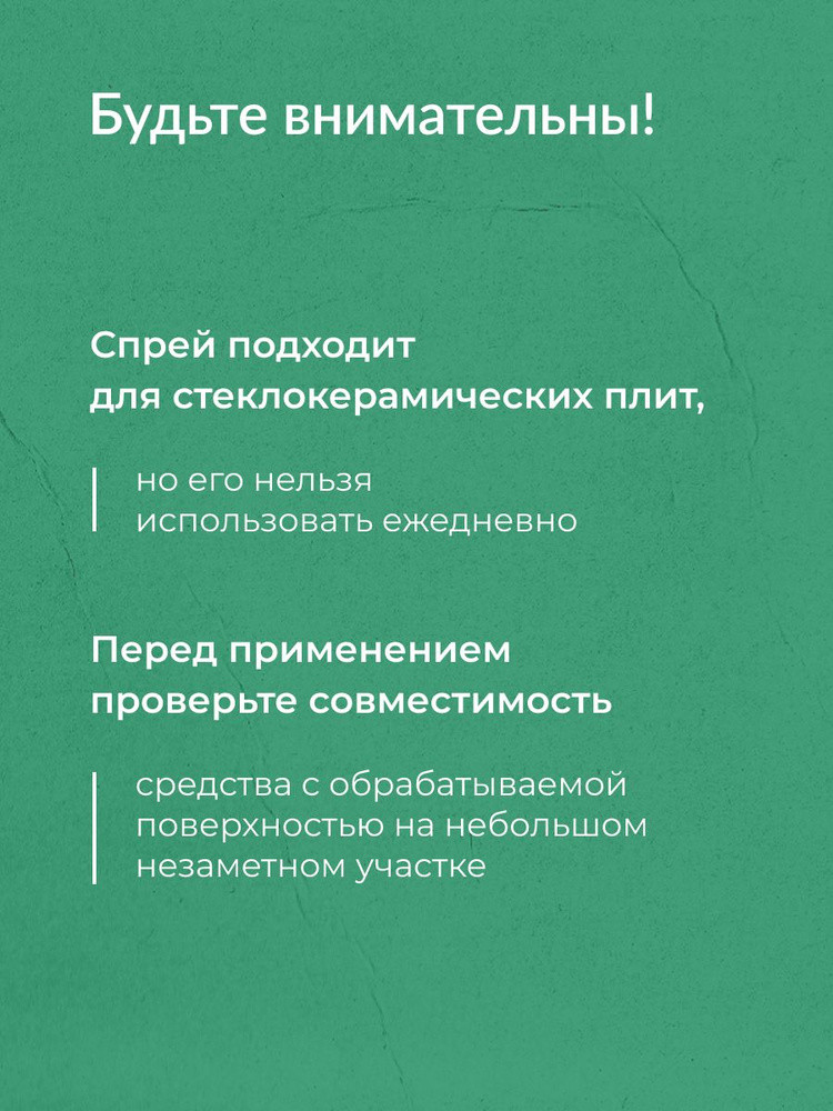 Меры предосторожности: хранить в недоступном для детей месте. При работе со средством использовать перчатки. В случае попадания в глаза немедленно промыть большим количеством проточной воды. При необходимости обратиться к врачу. С осторожностью используйте жироудалитель на стеклокерамических плитах — он не подходит для ежедневного использования на стеклокерамике. Средство также не подходит для антипригарных покрытий, линолеума, дерева, лакированных и окрашенных поверхностей, алюминия, кожи, шёлка и стекла.