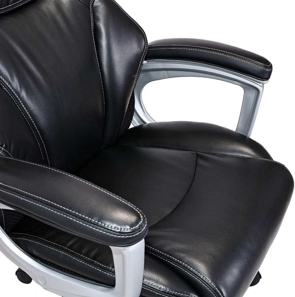 Плотная набивка, подлокотники с мягкими накладками и широкое сиденье обеспечивают великолепную эргономику данной модели. Надёжный механизм «Топ-ган» позволяет осуществлять свободное качание с фиксацией в рабочем положении и регулировку силы отклонения под вес сидящего. Кресло выдерживает нагрузку до 125 кг.