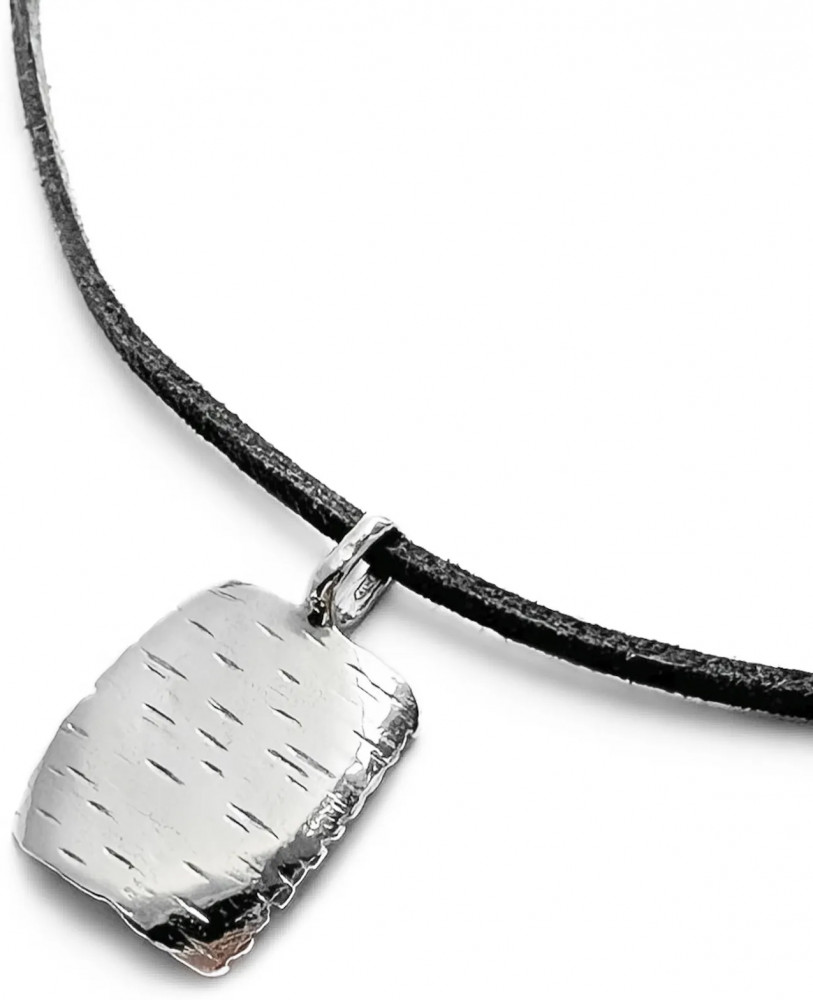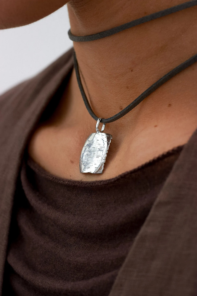 Один из главных «деревянных» символов нашей страны, который был и остается материалом для самых разнообразных предметов быта. Взяли за основу узнаваемую текстуру березы и превратили ее в минималистичное колье для каждого дня. В комплекте с подвеской идет серый шнурок.
