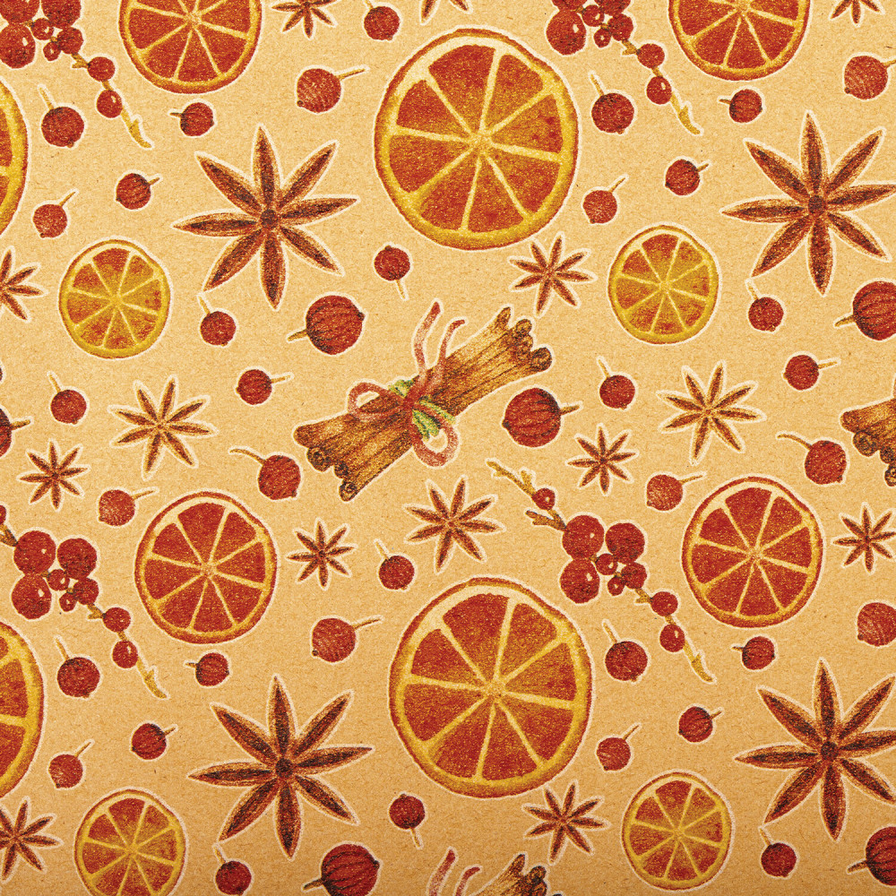 Золотая сказка Бумага упаковочная крафт «Апельсин и корица»