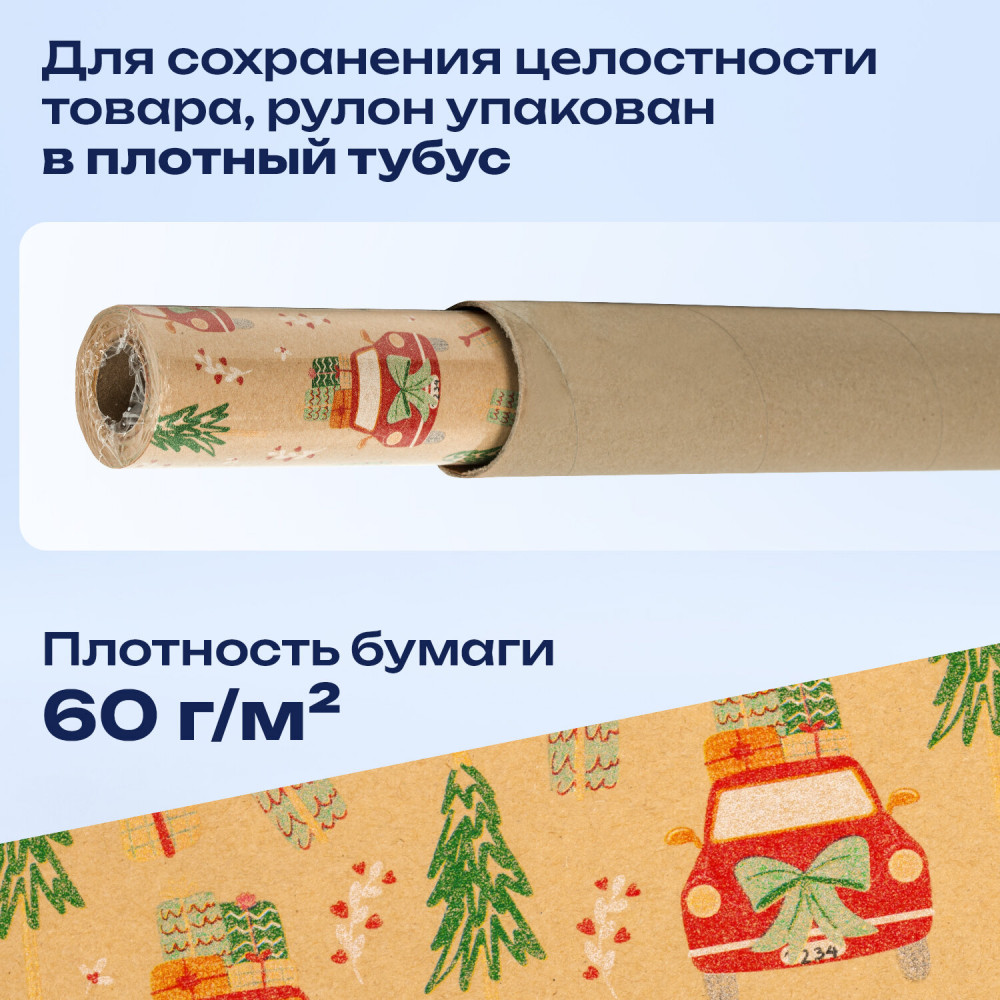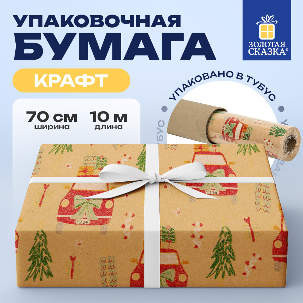 Золотая сказка Бумага упаковочная крафт «XMAS Car»