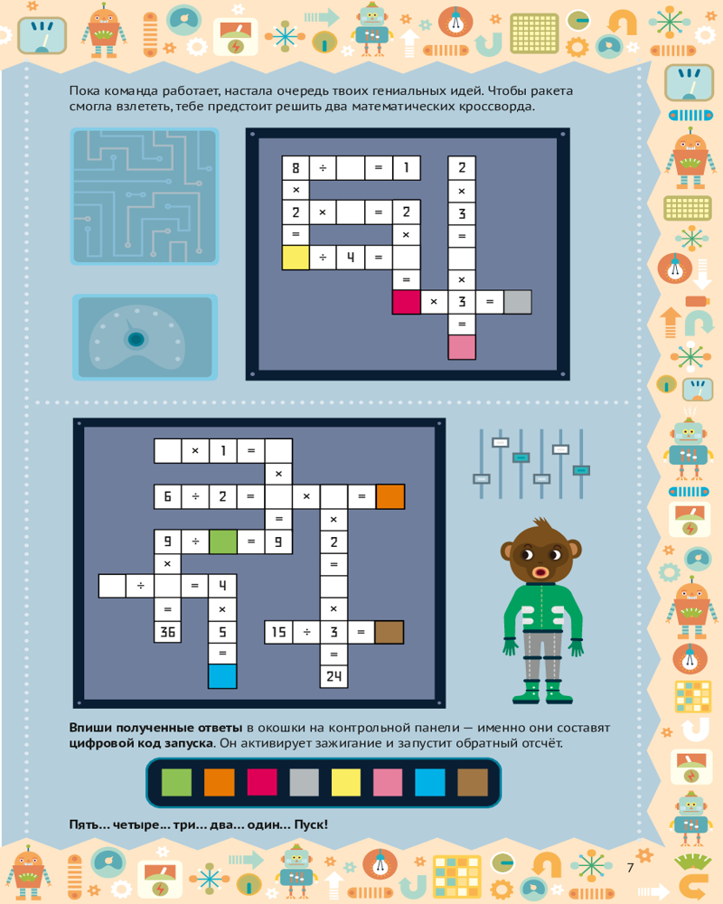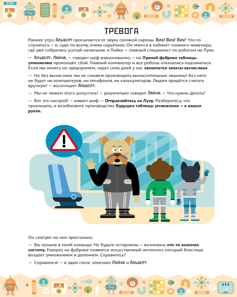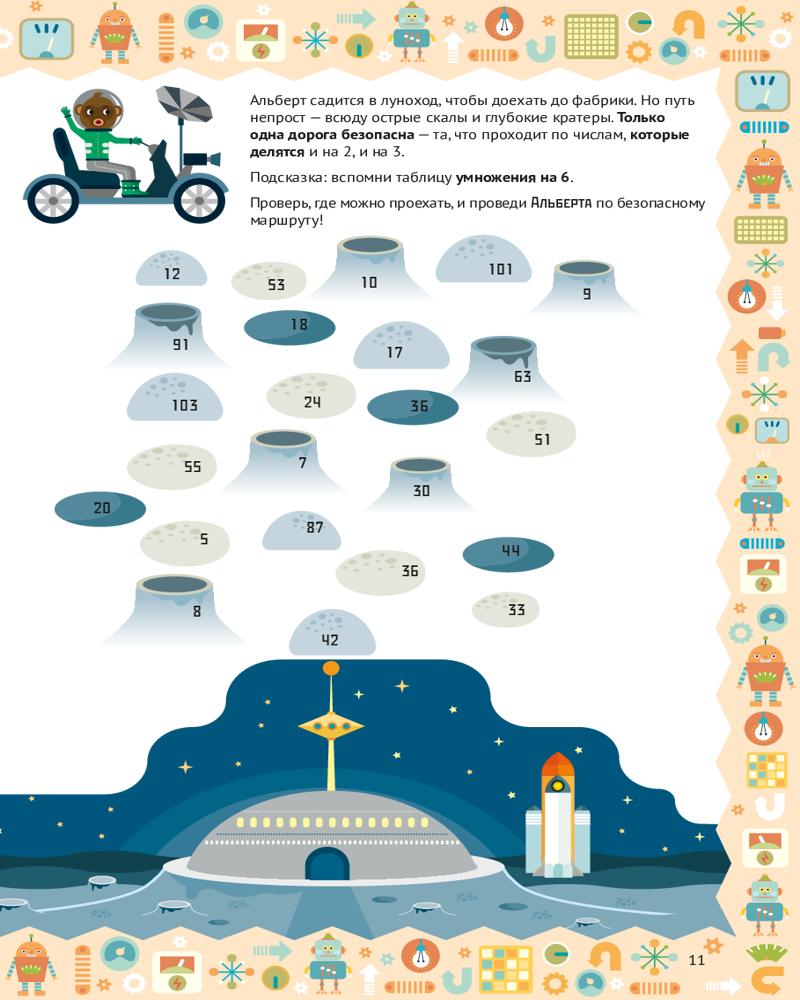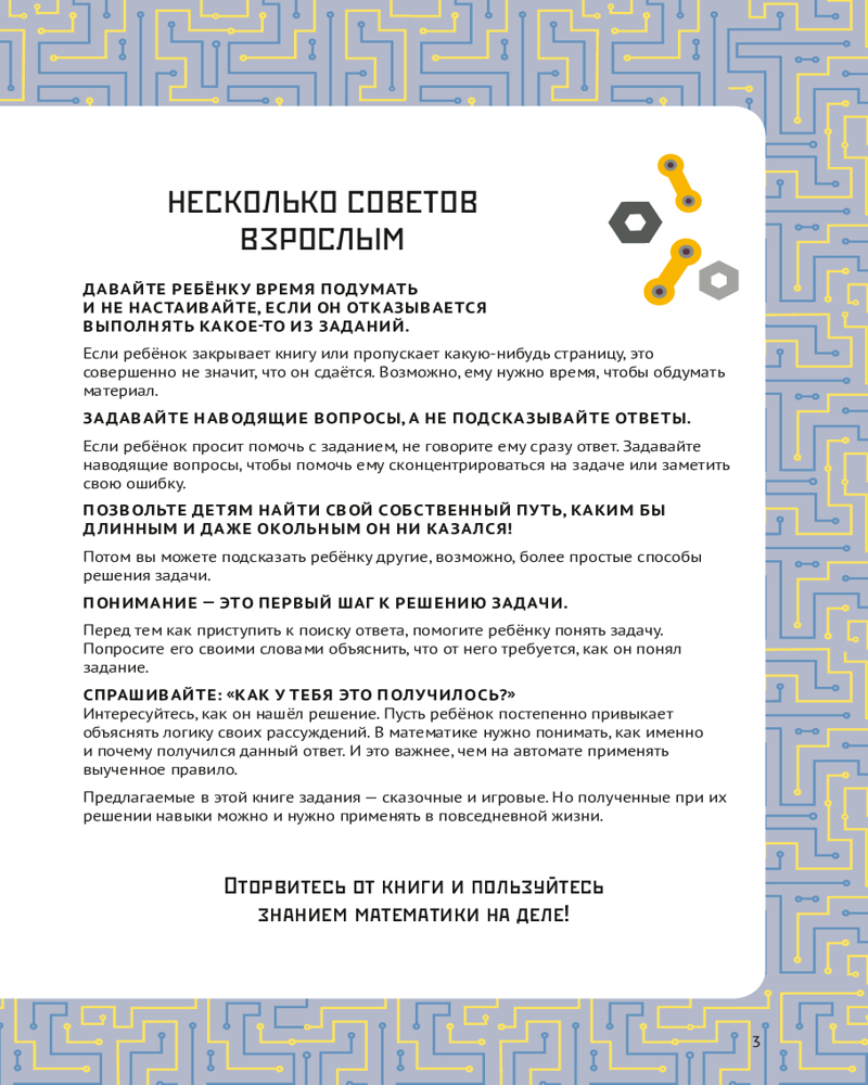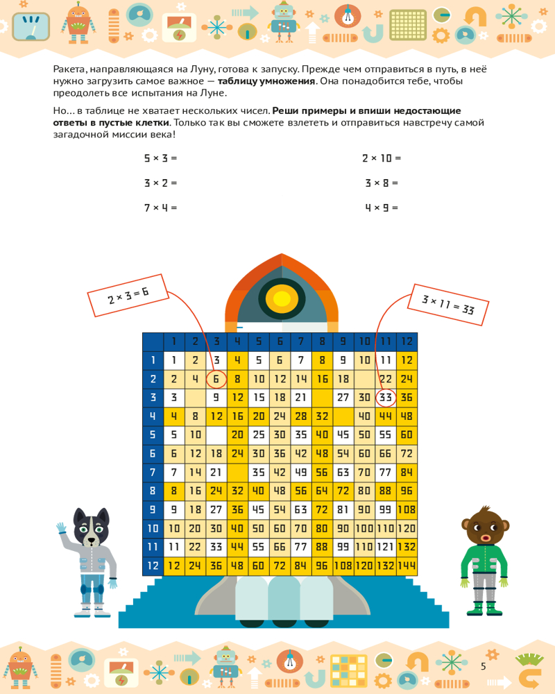 Серия: Математический старт Это тетрадь, которая поможет ребёнку от 8 лет без страха и скуки выучить таблицу умножения и научиться быстро делить. Вместе с героями — Альбертом, Лайкой и роботом-помощником Другом 1 — ребёнок отправится в космическое путешествие на фабрику вычислина, чтобы восстановить порядок и разгадать главную математическую тайну. Каждое упражнение построено так, чтобы ребёнок не просто запоминал, а понимал, как работает умножение и деление, и мог использовать эти знания в жизни. Книга развивает математическое мышление через задания-квесты, работу с наклейками и вовлекающие мини-истории. Отличный способ совместить обучение и удовольствие. |