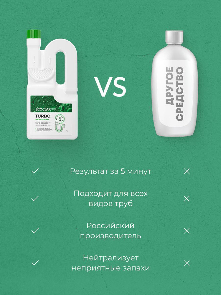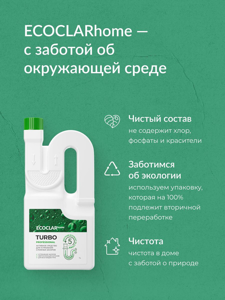 ECOCLAR Активное средство для устранения сложных засоров «Turbo»новинка