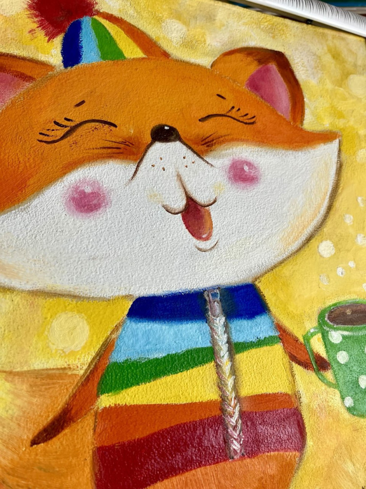 💳 Оплатить за товар можно при получении 🇰🇿 Есть бесплатная доставка по Казахстану от 1 дня 🎁 Копите бонусы с каждой покупки «Красный пумпончик» — яркая и добрая картина, наполненная солнечным настроением и теплом. Весёлый лисёнок в радужном свитерке и шапочке с красным помпоном будто приглашает улыбнуться новому дню. Его искренняя радость и чашка горячего какао создают атмосферу уюта |