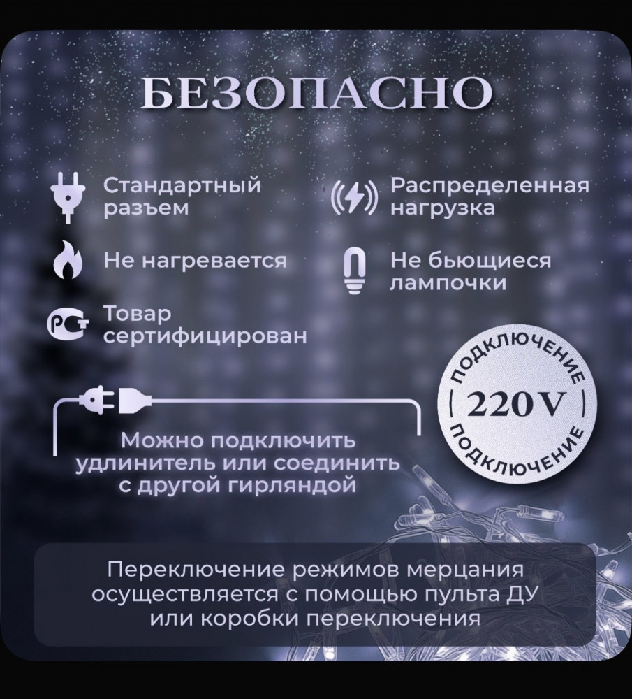 светит теплым светом, подключили к прошлогодней гирлянде . удобно красиво. спасибо