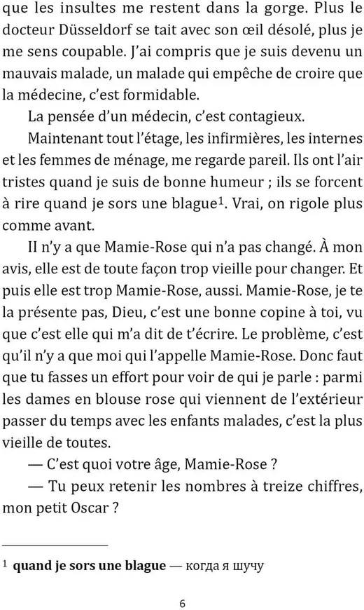 💳 Оплатить за товар можно при получении 🇰🇿 Есть бесплатная доставка по Казахстану 🎁 Копите бонусы с каждой покупки Серия: Чтение в оригинале. Французский язык В этой повести — письма, написанные Богу десятилетним мальчиком, который сейчас живет в больнице. В них — двенадцать дней и сто лет из жизни Оскара. Двенадцать дней, веселых, полных фантазии и игры, и сто лет полноценной взрослой жизни со всеми ее радостями и горестями. Эти двенадцать дней, возможно, стали последними, но благодаря Розовой Даме, которая стала близкой подругой Оскара, они будут светлыми и незабываемыми... |