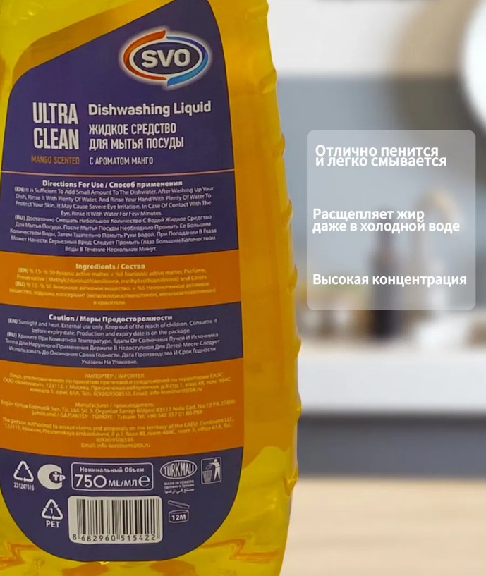 SVO — это эффективное средство для мытья посуды, которое сделает ваш процесс мытья быстрым и легким. Его формула быстро удаляет жир и загрязнения, оставляя вашу посуду чистой и блестящей. SVO подходит для мытья различных видов посуды, от тарелок и стаканов до кастрюль и сковородок. Его приятный аромат сделает мытье посуды более приятным опытом. Доверьте чистоту своей посуды SVO и наслаждайтесь свободным временем. Средство для мытья посуды SVO с ароматом манго станет незаменимым помощником на вашей кухне. Его эффективная формула быстро и бережно удаляет жир и загрязнения, оставляя посуду сверкающей чистотой. Объем 750 мл хватит надолго, а приятный аромат сделает мытье посуды более приятным. SVO — ваш надежный помощник в поддержании чистоты и порядка на кухне.