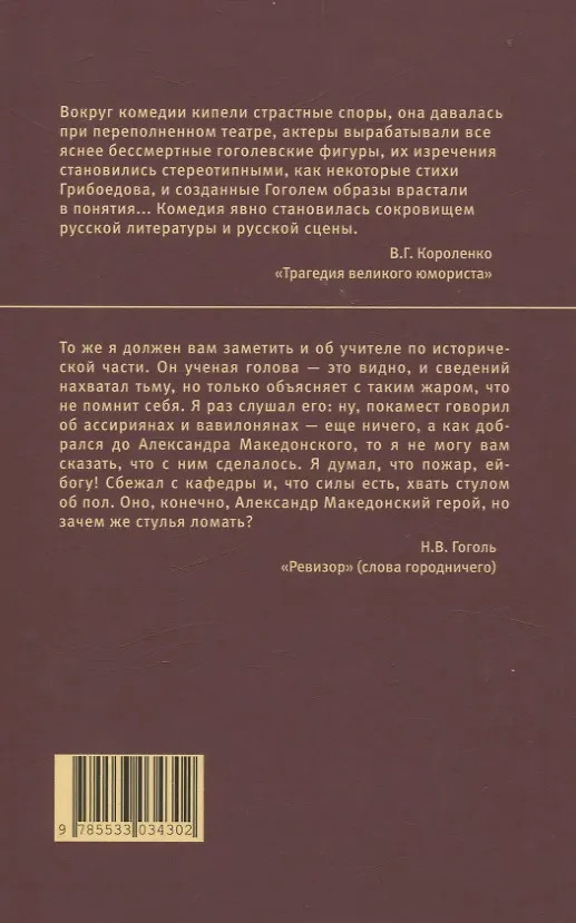💳 Оплатить за товар можно при получении 🇰🇿 Есть бесплатная доставка по Казахстану 🎁 Копите бонусы с каждой покупки Серия: проЧТЕНИЕ классики В книгу вошли два произведения Н.В. Гоголя: комедия «Ревизор», которая была написана в 1835 г., впервые поставлена в 1836-м и с тех пор является одной из самых репертуарных пьес русского театра, и повесть «Шинель», написанная в 1839-1841 гг. (это последняя из пяти повестей, объединяемых традиционно в цикл «Петербургские повести»). К этим произведениям школьная программа обращается в 8 классе. Издание адресовано ученикам основной школы, учителям, а также всем любителям русской классики. |