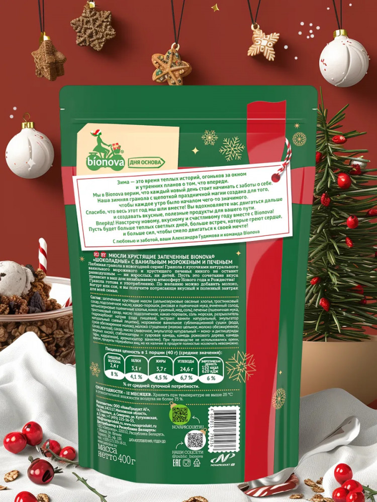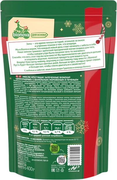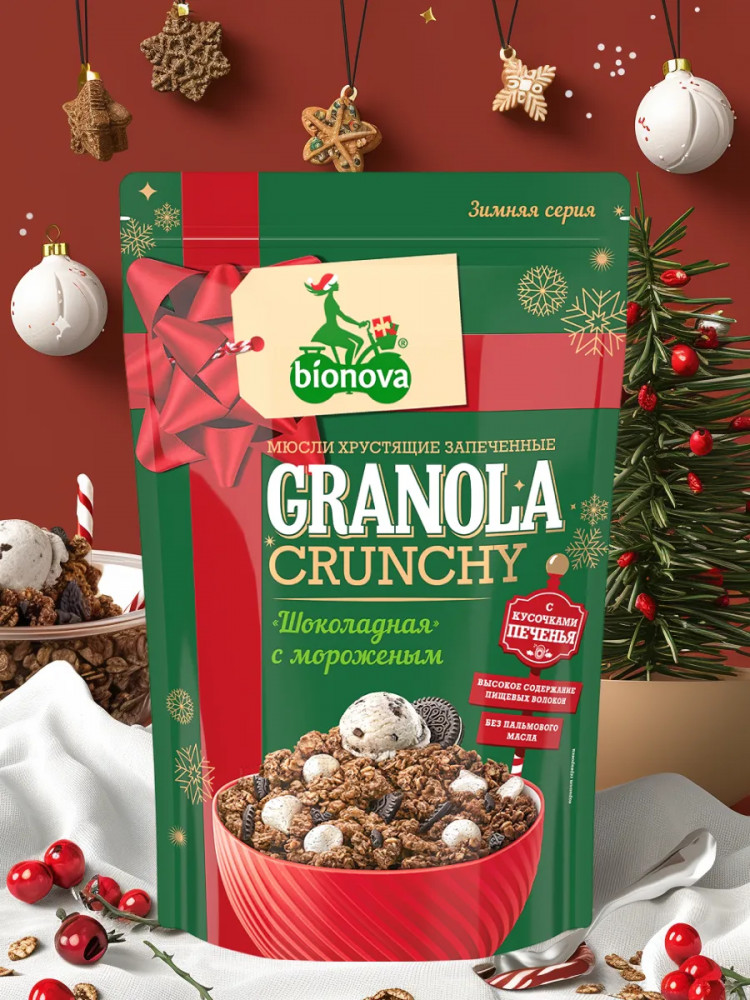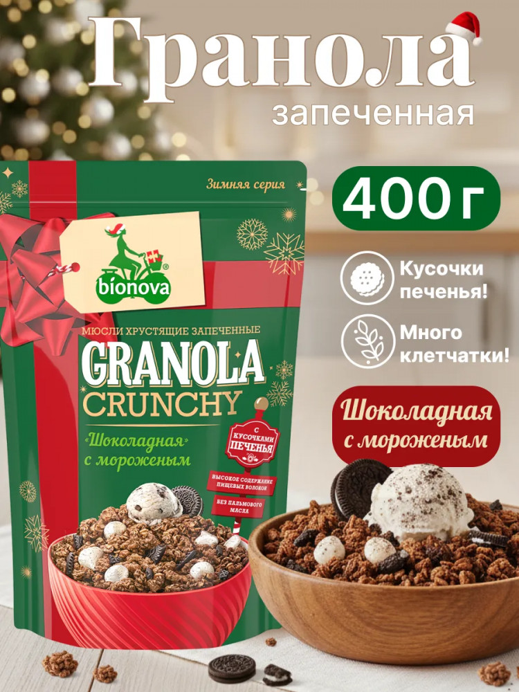 Bionova Мюсли запеченные с ванильным мороженым и печеньем «Шоколадные»