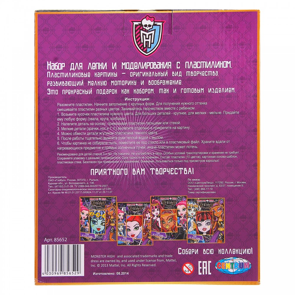 Centrum Панно из пластилина «Monster High»В данный момент этот товар отсутствует в продаже. Возможно, у нас найдется аналогичный или похожий товар здесь. Серия: Monster High Пластилиновые картины - оригинальный вид творчества, развивающий мелкую моторику и воображение. Это прекрасный подарок как набором, так и готовым изделием. |