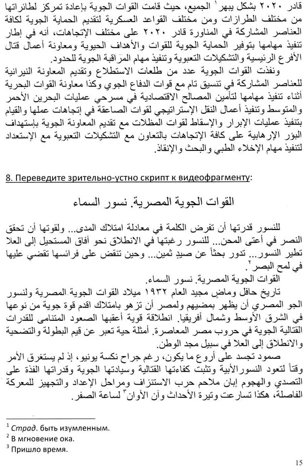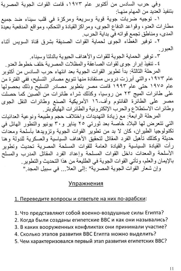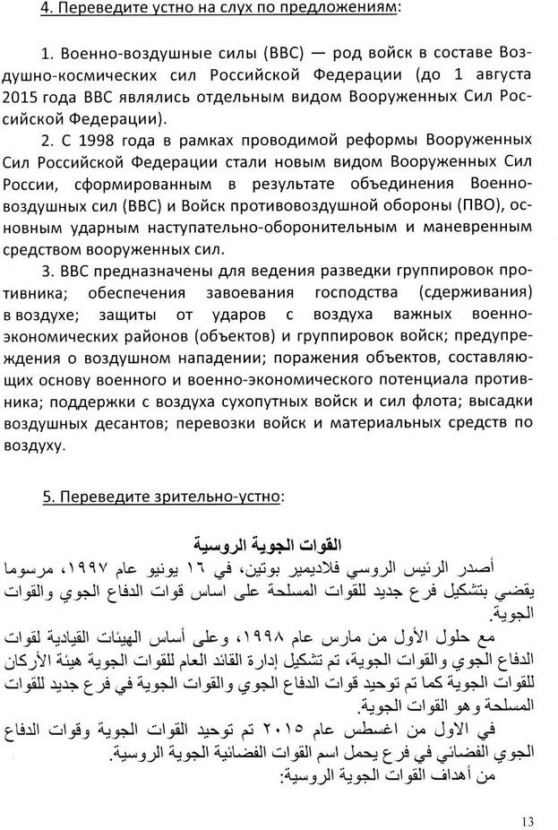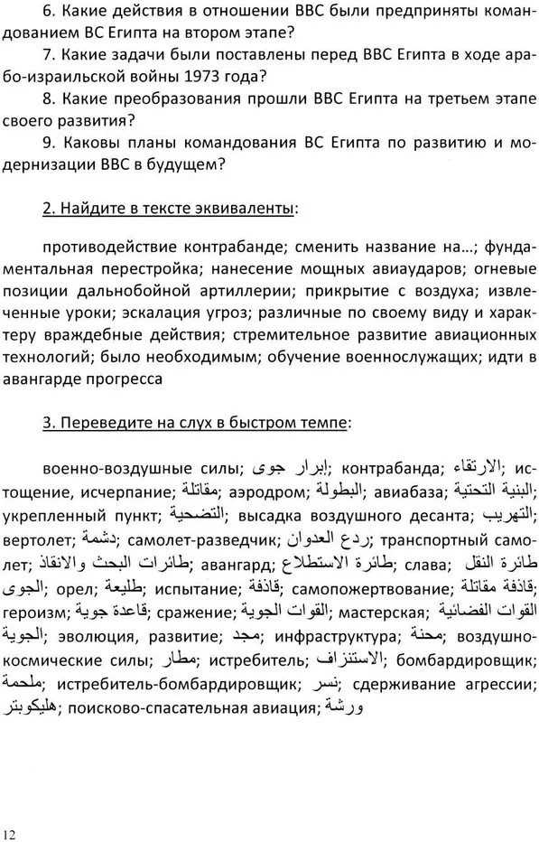 Специальный курс военного перевода. Арабский языкВ данный момент этот товар отсутствует в продаже. Возможно, у нас найдется аналогичный или похожий товар здесь. Настоящее учебное пособие предназначено для подготовки квалифицированных офицеров-переводчиков по военно-учетной специальности 390404 «Лингвистическое обеспечение военной деятельности» (арабский язык). Материалы пособия содержат информацию о боевых задачах, организации и вооружении военно-воздушных и военно-морских сил Египта и других государств, структуре штабов, видах боевых документов, а также порядке ведения допроса военнопленных, перебежчиков и опроса местных жителей. |