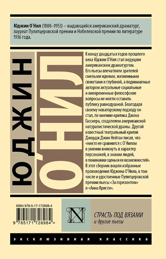 💳 Оплатить за товар можно при получении 🇰🇿 Есть бесплатная доставка по Казахстану от 1 дня 🎁 Копите бонусы с каждой покупки Серия: Эксклюзивная классика К концу двадцатых годов прошлого века Юджин О'Нил стал ведущим американским драматургом. Его пьесы впечатляли зрителей смелыми идеями, жизненными сюжетами и глубиной, а поднимаемые автором актуальные социальные и вневременные философские вопросы не могли оставить публику равнодушной. Благодаря своему новаторскому подходу он стал, по мнению критика Джона Гасснера, создателем американской натуралистической драмы. Другой известный театральный критик Джордж Джин Нейтан писал, что «никто не сравнится с О'Нилом в умении вникнуть в характер персонажей, в знании людей, в понимании сцены и ее возможностей». |