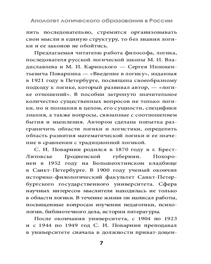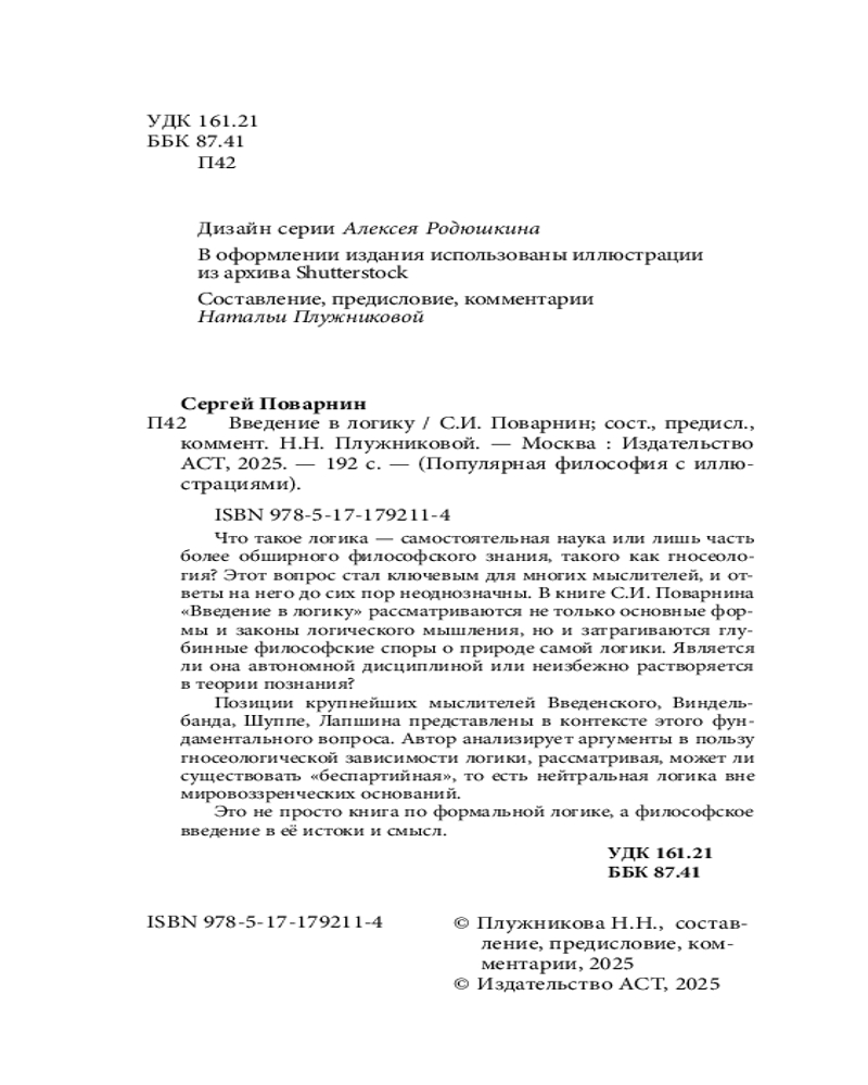 Серия: Популярная философия с иллюстрациями Что такое логика — самостоятельная наука или лишь часть более обширного философского знания, такого как гносеология? Этот вопрос стал ключевым для многих мыслителей, и ответы на него до сих пор неоднозначны. В книге С. И. Поварнина «Введение в логику» рассматриваются не только основные формы и законы логического мышления, но и затрагиваются глубинные философские споры о природе самой логики. Является ли она автономной дисциплиной или неизбежно растворяется в теории познания? |