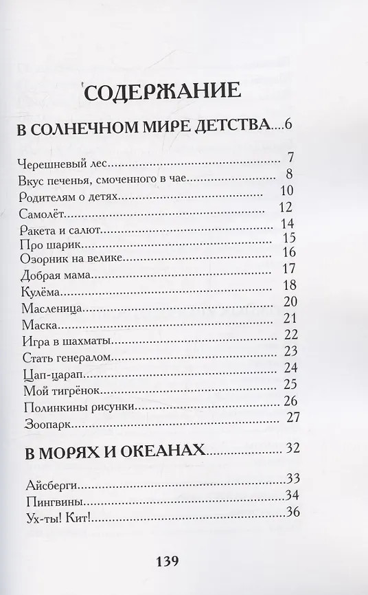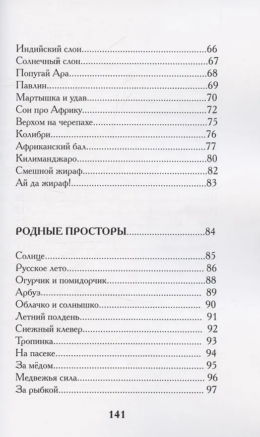В книжке собраны веселые стихи о детях разного возраста — наших милых шалунишках, порой поражающих всех своей непосредственностью. А также широко представлены стихи о различных животных со всего мира, с которыми дети могут познакомиться на страничках этой книги. Светлые строки стихов могут порадовать не только детей, но и их родителей. Красочные иллюстрации позволят читателям зримо пережить происходящие события вместе с героем каждого стихотворения. Эта увлекательная книжка поможет увидеть детский мир в солнечном свете доброты. |