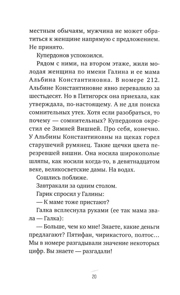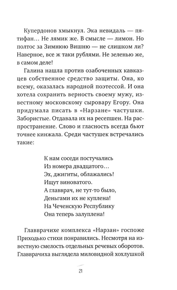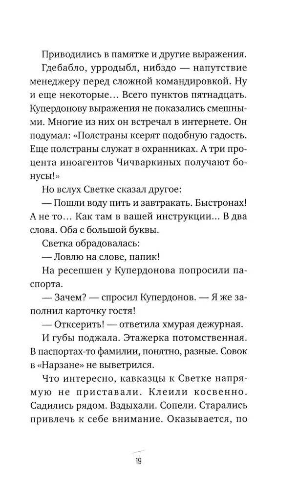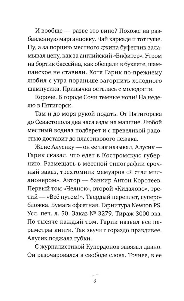 В новую книгу Александра Куприянова, московского писателя, журналиста, главного редактора газеты «Вечерняя Москва», вошли произведения, жанр которых сам автор определил как ироническую прозу, или «треш-повести». «Треш» — иностранное слово, но русский язык велик и могуч, поэтому слово «треш» ему не жмёт. В переводе с английского «треш» — это мусор и хлам, в переводе с подросткового — невыносимая тяжесть бытия. Главный герой повестей — журналист, издатель Гарик Купердонов — к невыносимой тяжести бытия относится философски. И с юмором. Попадая в самые невероятные и нелепые ситуации, он сохраняет в себе одно из главных человеческих качеств — смеяться над собой и смотреть на жизнь с оптимизмом. Хотя подчас это невероятно сложно. Особенно в текущий момент развития человечества. Особенно сейчас. Когда бы вы ни открыли эту книгу. Можно сказать, что ироническая проза Александра Куприянова наследует традициям Гоголя, Бабеля, Зощенко, Довлатова. Можно сказать, что она ни на что не похожа. И то и то будет правдой. |